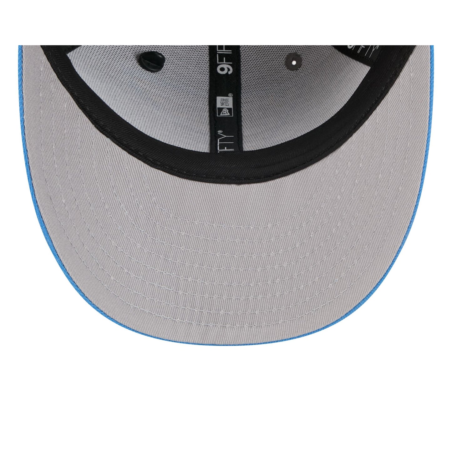 The St. Louis Blues Heather Gray Wool Low Profile 9FIFTY snapback features a faux leather applique Blues logo at the front panels against a wool fabrication throughout the cap. Additional details include a conference patch at the right-wear side, an NHL pin at the front, and a script wordmark above an adjustable snapback closure at the rear.