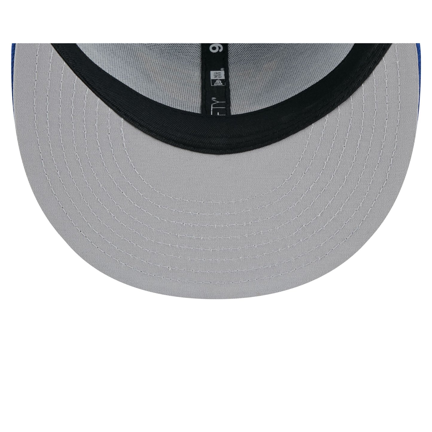 The St. Louis Blues Team Tag 9FIFTY Trucker features an embroidered Blues logo at the front panels with a team tag on an snapback closure at a mesh rear and a gray undervisor.