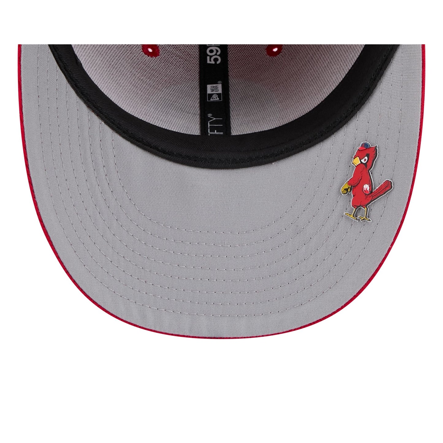 The St. Louis Cardinals 2025 Clubhouse Alt Low Profile 59FIFTY Fitted Cap features an embroidered Cardinals alternate logo at the front panels with a matching MLB Batterman logo at the rear. Additional details include a dashmark mesh fabrication and a silicone logo on a gray undervisor.