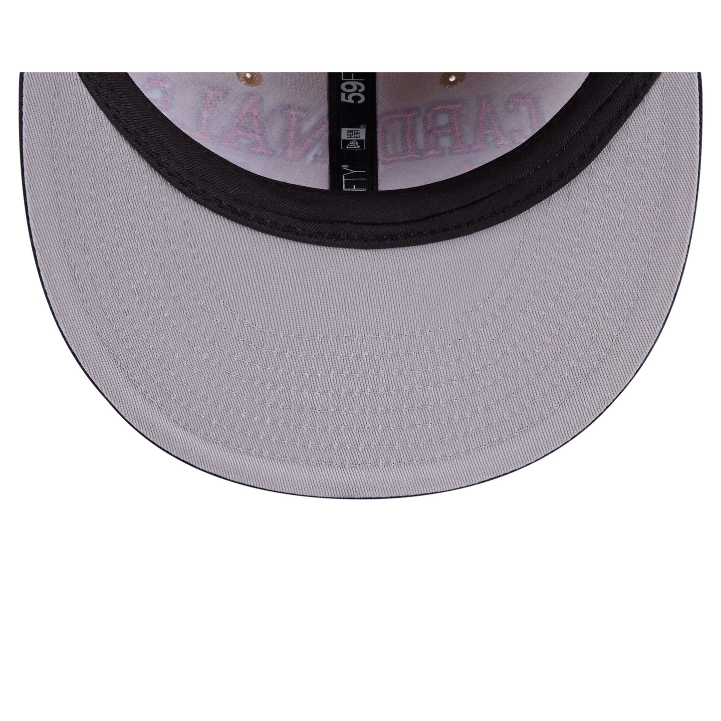 The St. Louis Cardinals Camel Retro Crown 59FIFTY Fitted Cap features an embroidered Cardinals Cooperstown wordmark, logo, and league patch at the front panels. Additional details include an MLB Batterman logo at the rear and a gray undervisor.