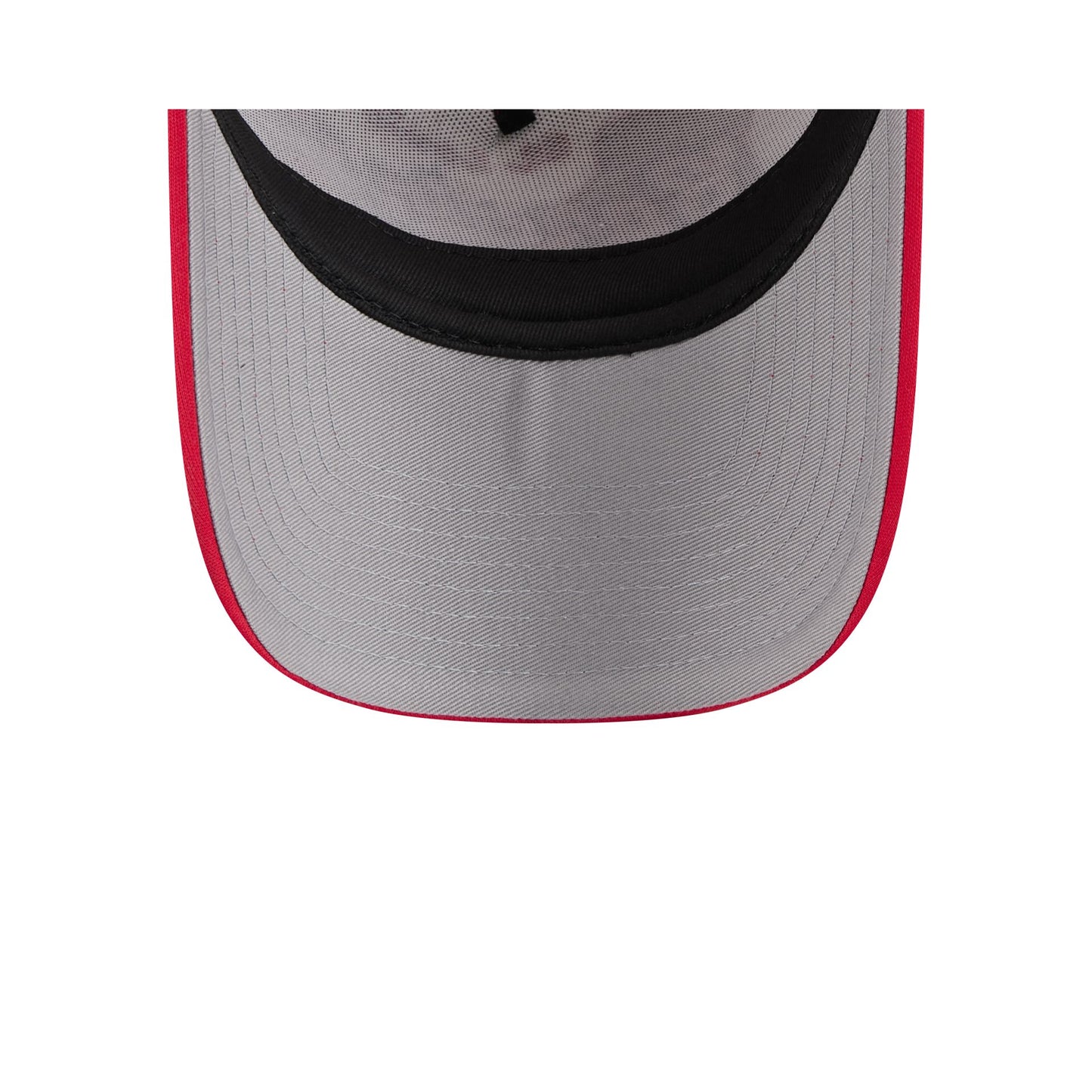 The St. Louis Cardinals State Flower 9FORTY A-Frame Trucker features a puff print Cardinals wordmark at the front panels against an embroidered state design with a team logo at the right-wear side. Additional details include a snapback closure at a mesh rear and a gray undervisor.