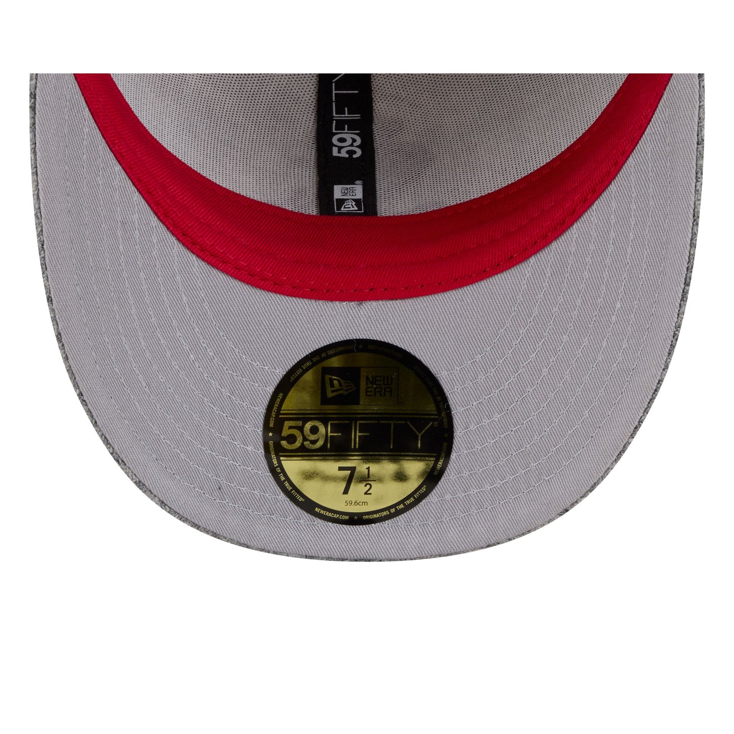The St. Louis Cardinals Stone Shetland Moon 59FIFTY Fitted Cap features an embroidered Cardinals Cooperstown logo at the front panels with a Shetland Moon fabrication throughout and a satin Moon tag woven to the right-wear side. Additional details include a team color sweatband, the MLB Batterman logo at the rear, and a gray undervisor. This cap comes with a pre-curved visor.
