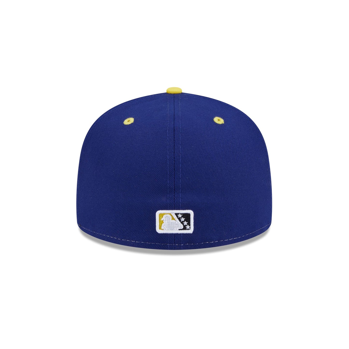 The St. Paul Saints Theme Night 59FIFTY Fitted Cap features an embroidered Saints theme night logo at the front panels with a matching MiLB Batterman logo at the rear and a gray undervisor.