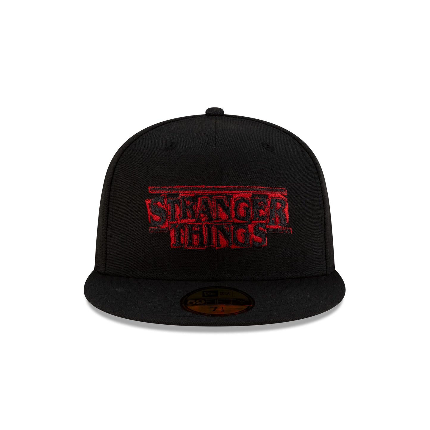 The Stranger Things Demogorgon 59FIFTY Fitted Cap features an embroidered Stranger Things graphic at the front panels with a Demogorgon New Era graphic at the right-wear side.