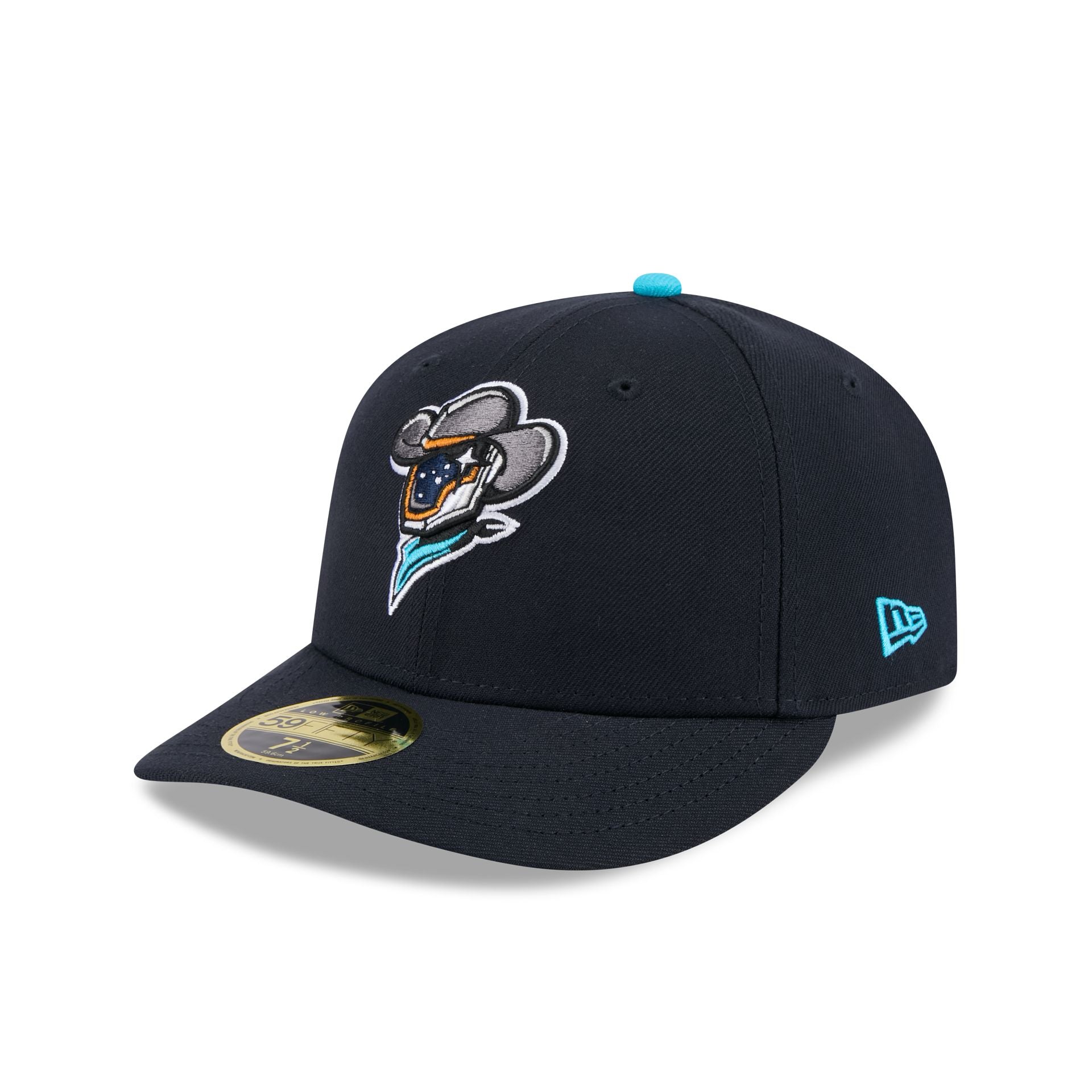 The Sugar Land Space Cowboys Authentic Collection Low Profile 59FIFTY Fitted Cap features an embroidered Space Cowboys logo at the front panels with a matching MiLB Batterman logo at the rear and a gray undervisor.