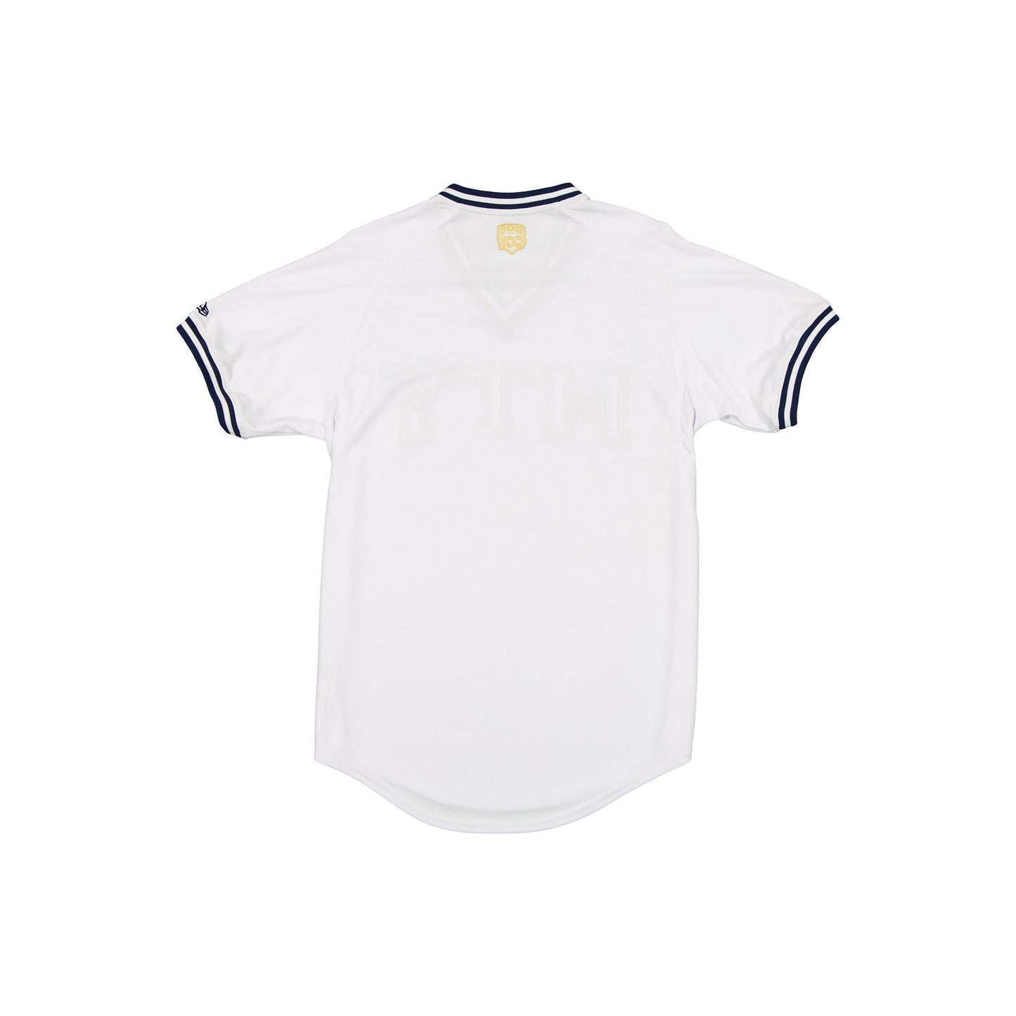 The Sultanes de Monterrey LMB 100th Anniversary White Alt Jersey features an embroidered Sultanes abbreviation at the chest with a New Era Official Merchandise patch at the front hemline and a LMB 100th Anniversary logo at the rear.