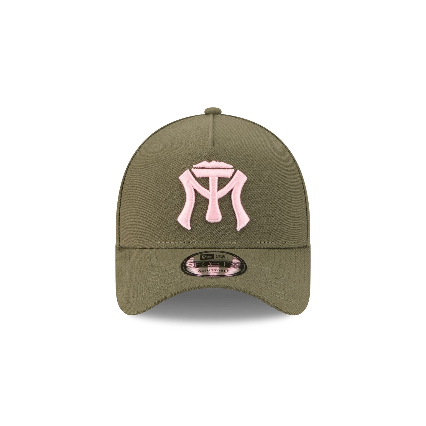 The Sultanes de Monterrey Olive 9FORTY A-Frame Snapback features an embroidered Sultanes logo at the front with a snapback closure at the rear and a gray undervisor.