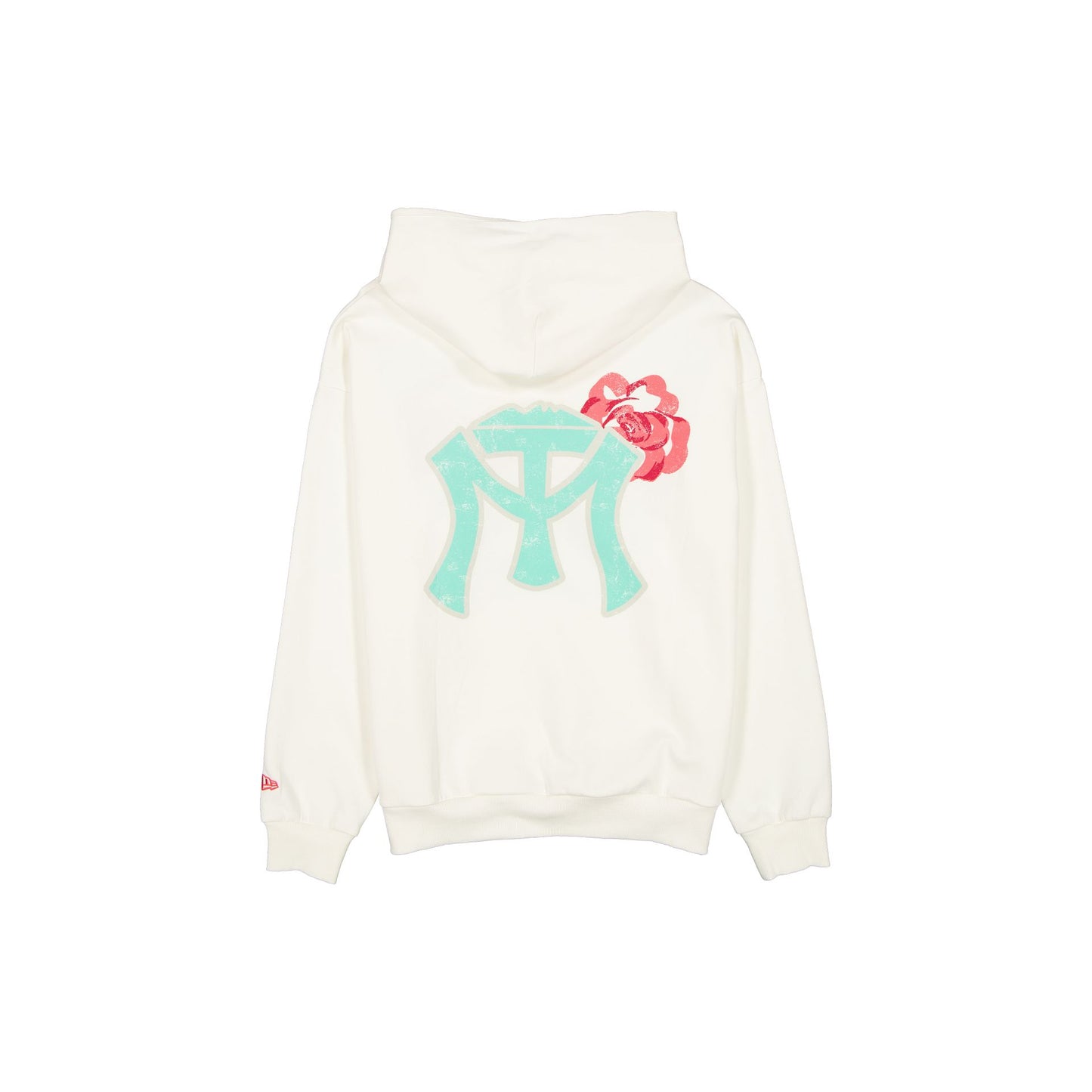 The Sultanes de Monterrey Stone Floral Hoodie features an embroidered Sultanes floral wordmark at the front with a screen-printed floral logo at the rear. Additional details include kangaroo pockets and adjustable drawstring at the hood.