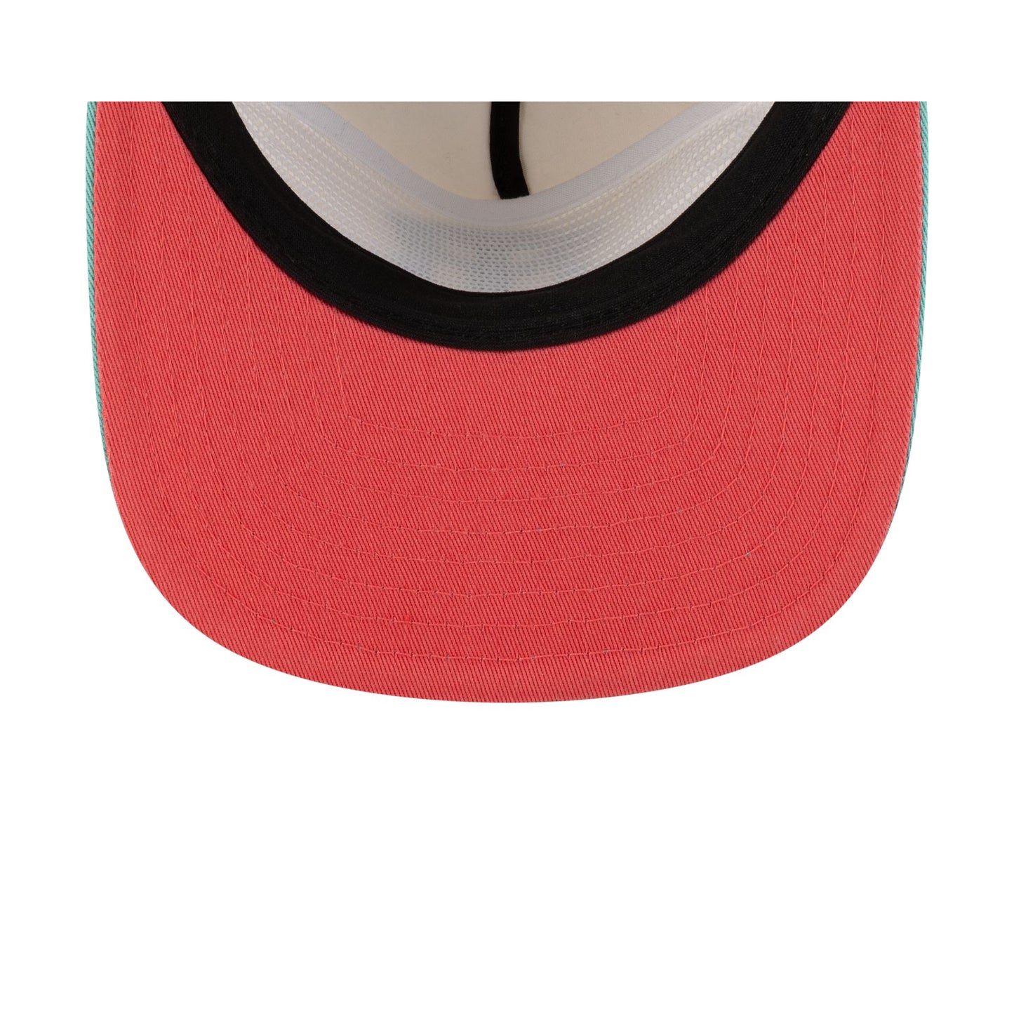 The Sultanes de Monterrey Two-Tone Golfer features a mint embroidered Sultanes logo at the front panel with a team patch at the right-wear side, a coral undervisor, and a snapback closure at the rear.