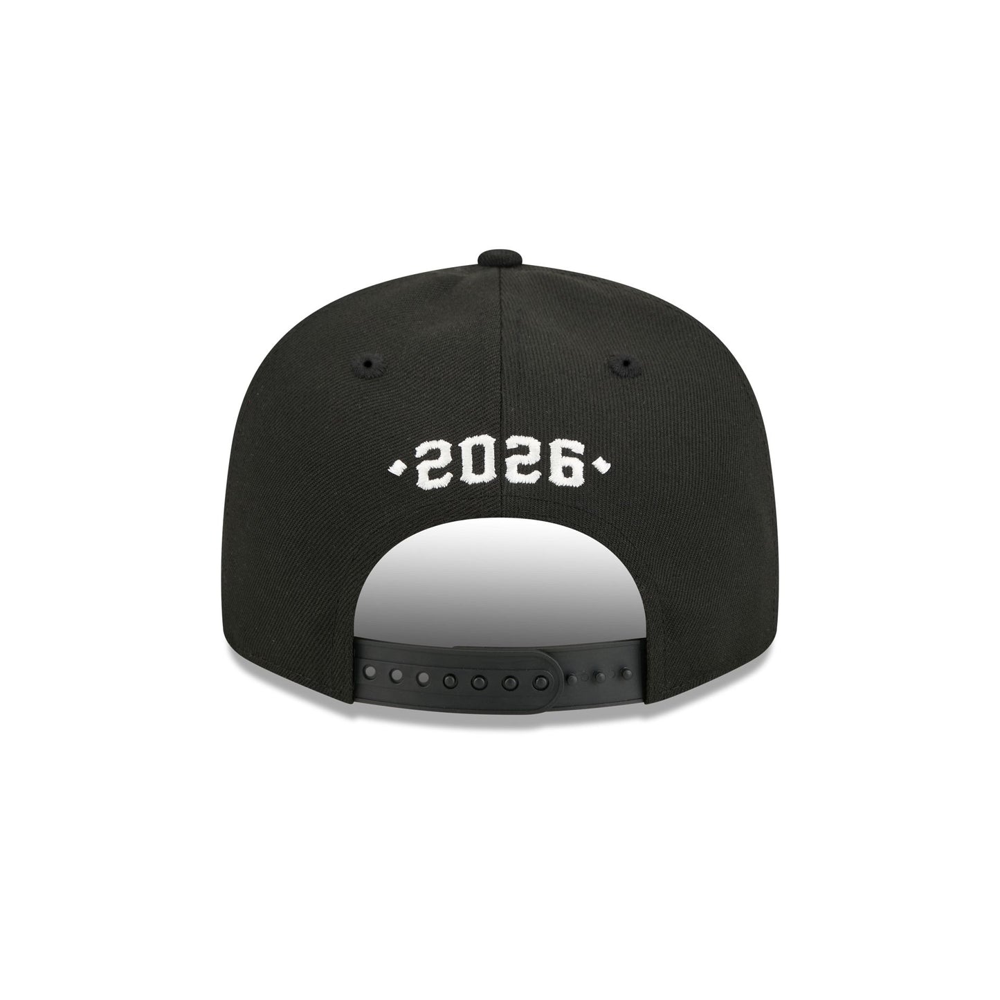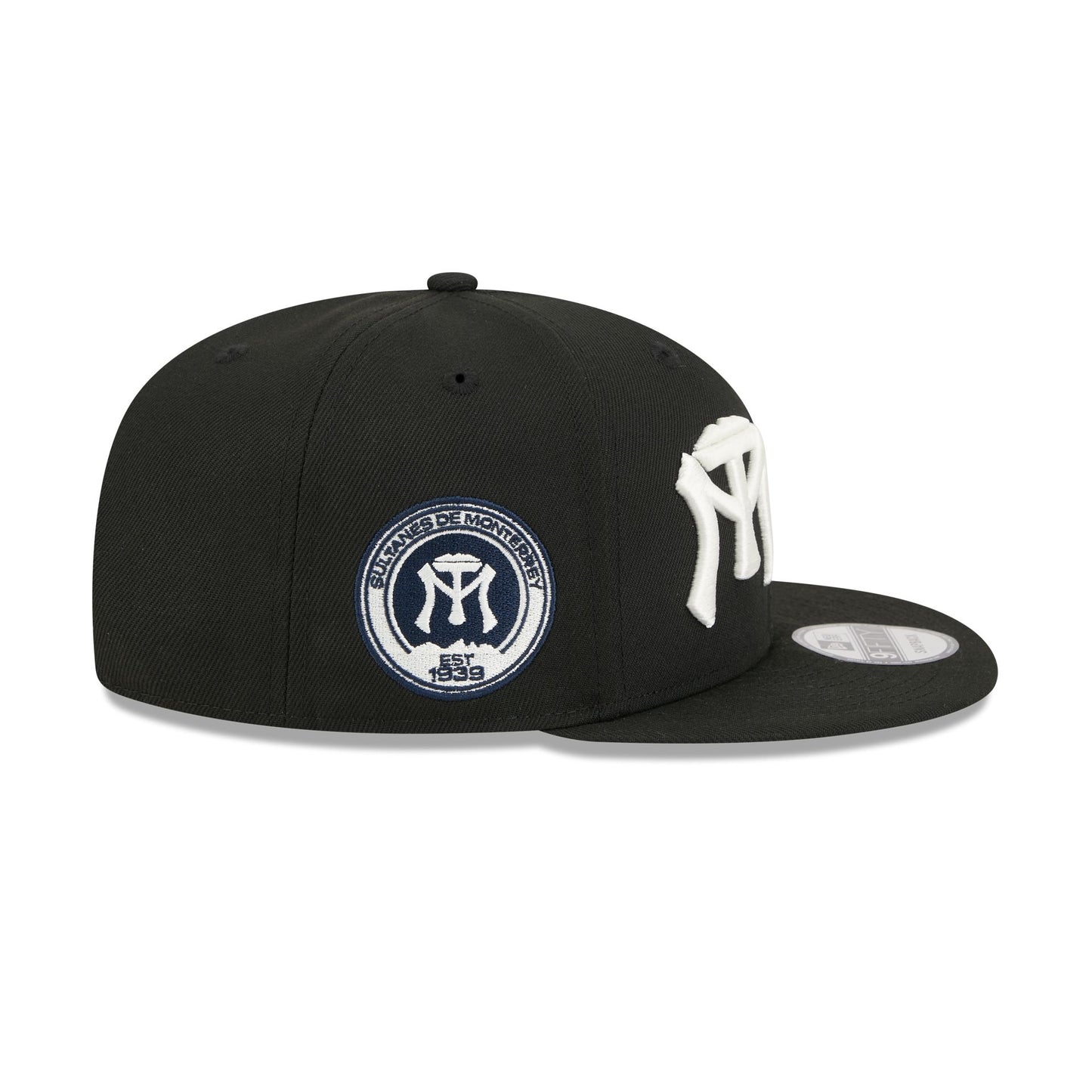 The Sultanes De Monterrey vs San Francisco Giants Chrome 9FIFTY Snapback features an embroidered Sultanes vs Giants logo at the front panels with a 2026 script above an adjustable snapback closure at the rear. Additional details include a Giants Since 1883 patch above a New Era Flag at the left-wear side with a Sultanes Est. 1939 patch at the right-wear side and a green undervisor.