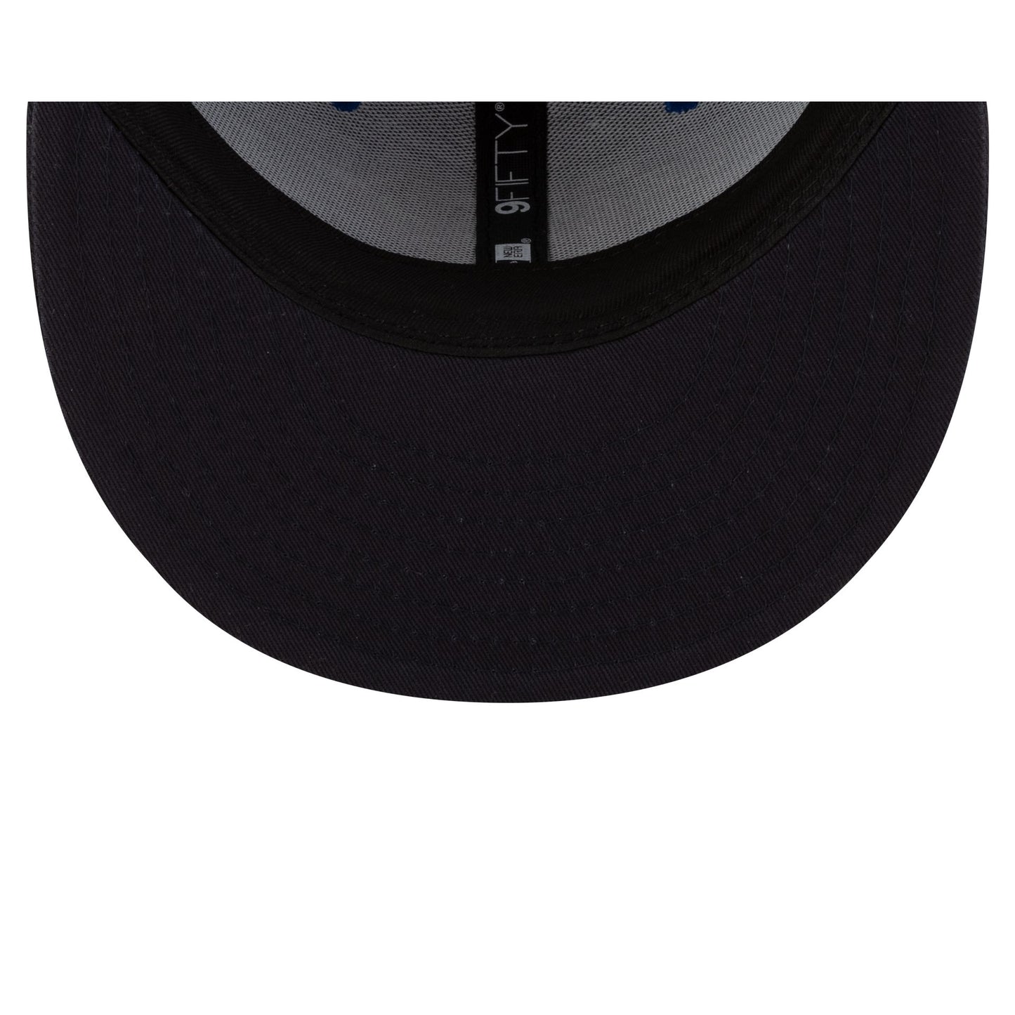 The Superman Blue Kids 9FIFTY Snapback features an embroidered Superman logo at the front panels with a comic allover print crown, a snapback closure at the rear, and a black undervisor.