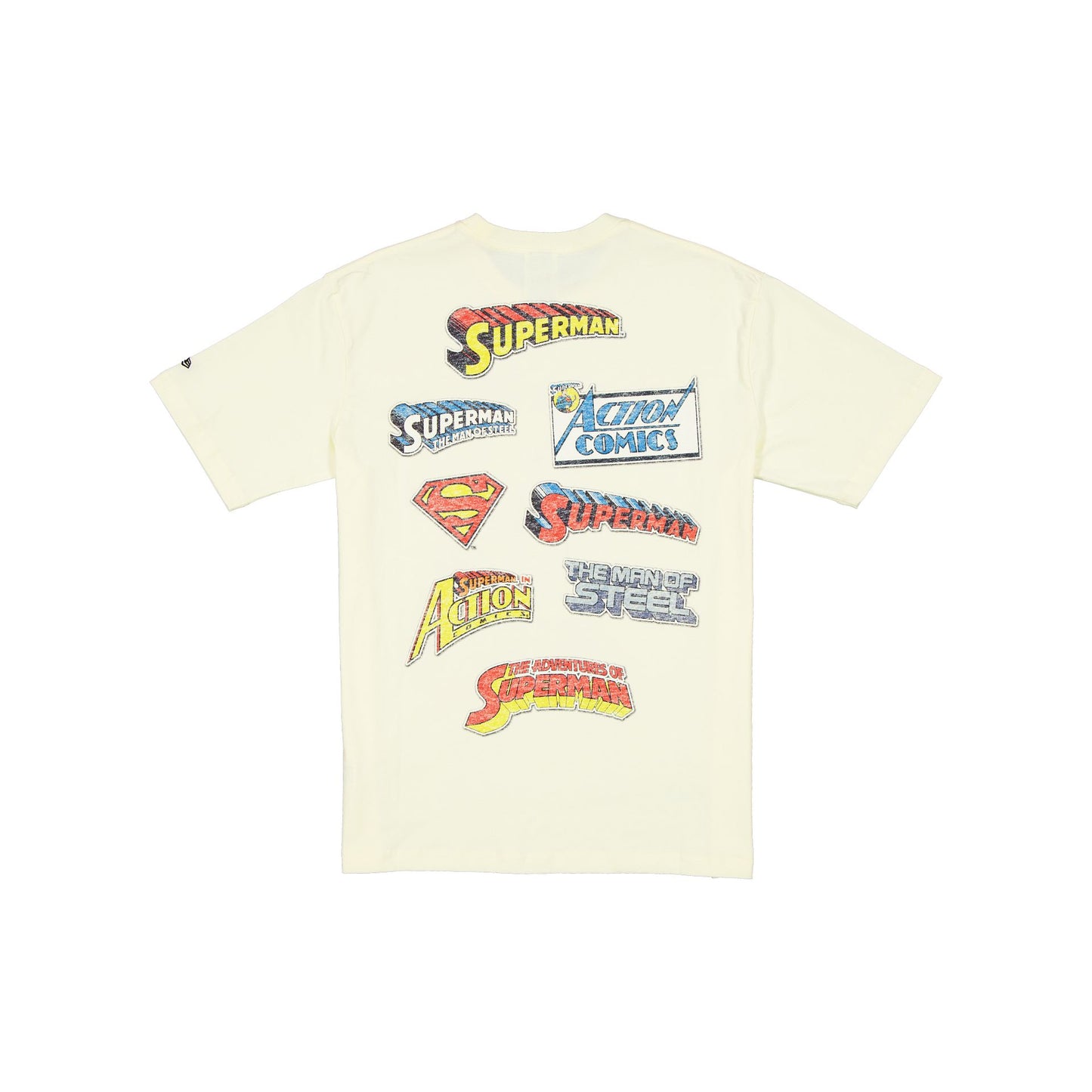 The Superman DC Comics 90th Anniversary T-Shirt features a screen-printed Superman graphic at the front and various logos at the rear.