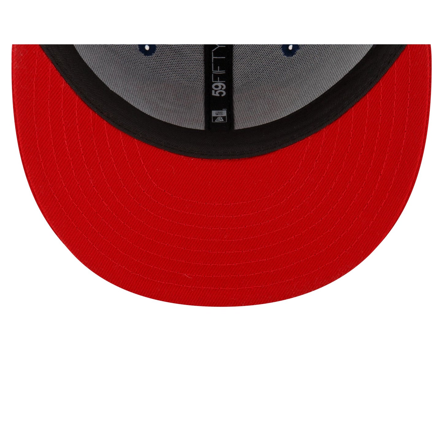 The Superman Two-Tone 59FIFTY Fitted Cap features an embroidered Superman logo at the front panels with the DC logo at the rear and a red undervisor.