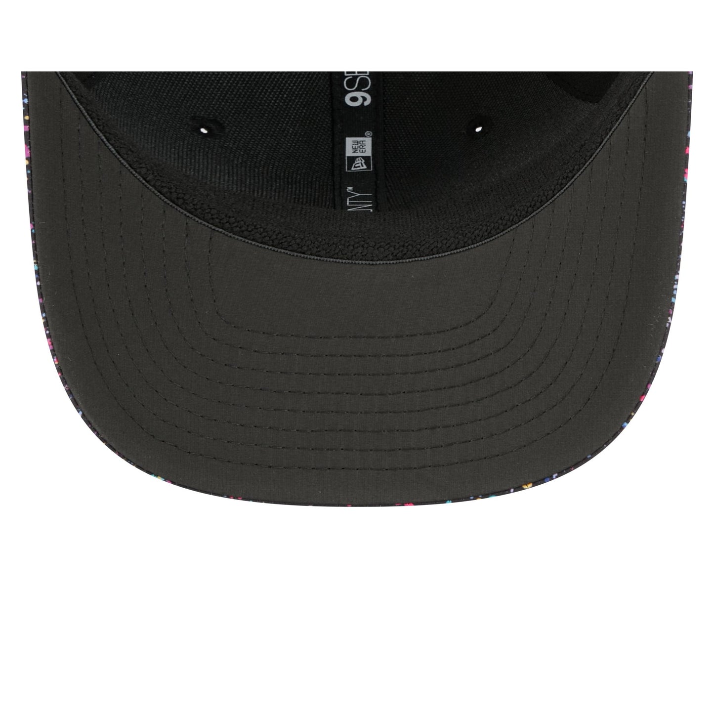 The Tampa Bay Buccaneers 2025 Crucial Catch 9SEVENTY Trucker features an embroidered Buccaneers logo at the front paint splatter panels with a woven NFL Shield tag above a snapback closure at the rear. Additional details include a Crucial Catch Intercept Cancer patch at the right-wear side with performance mesh rear panels and a black undervisor.
