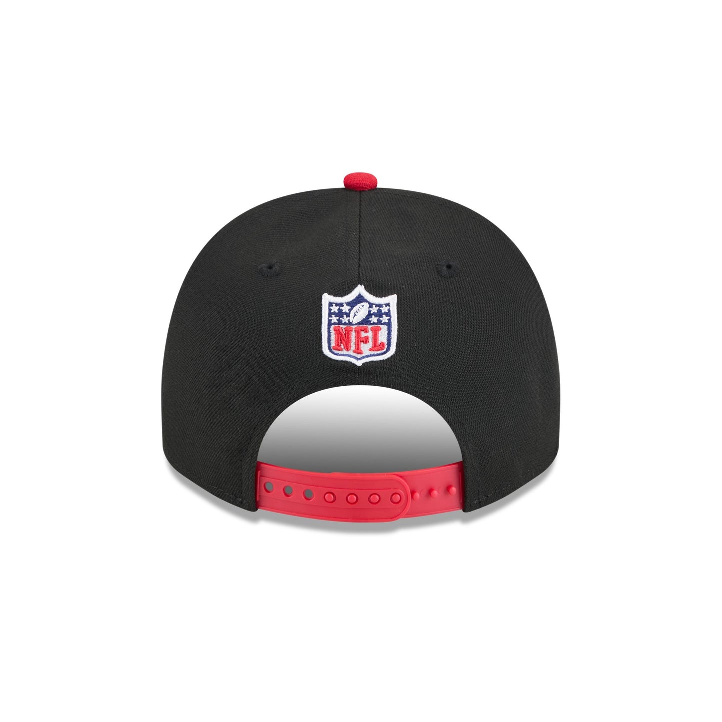 The Tampa Bay Buccaneers 2025 Draft 9FIFTY A-Frame Snapback features an embroidered Buccaneers logo and wordmark at the front panels with an NFL Shield logo above a snapback closure at the rear. Additional details include ornamental stitched details at the visor and a gray undervisor.