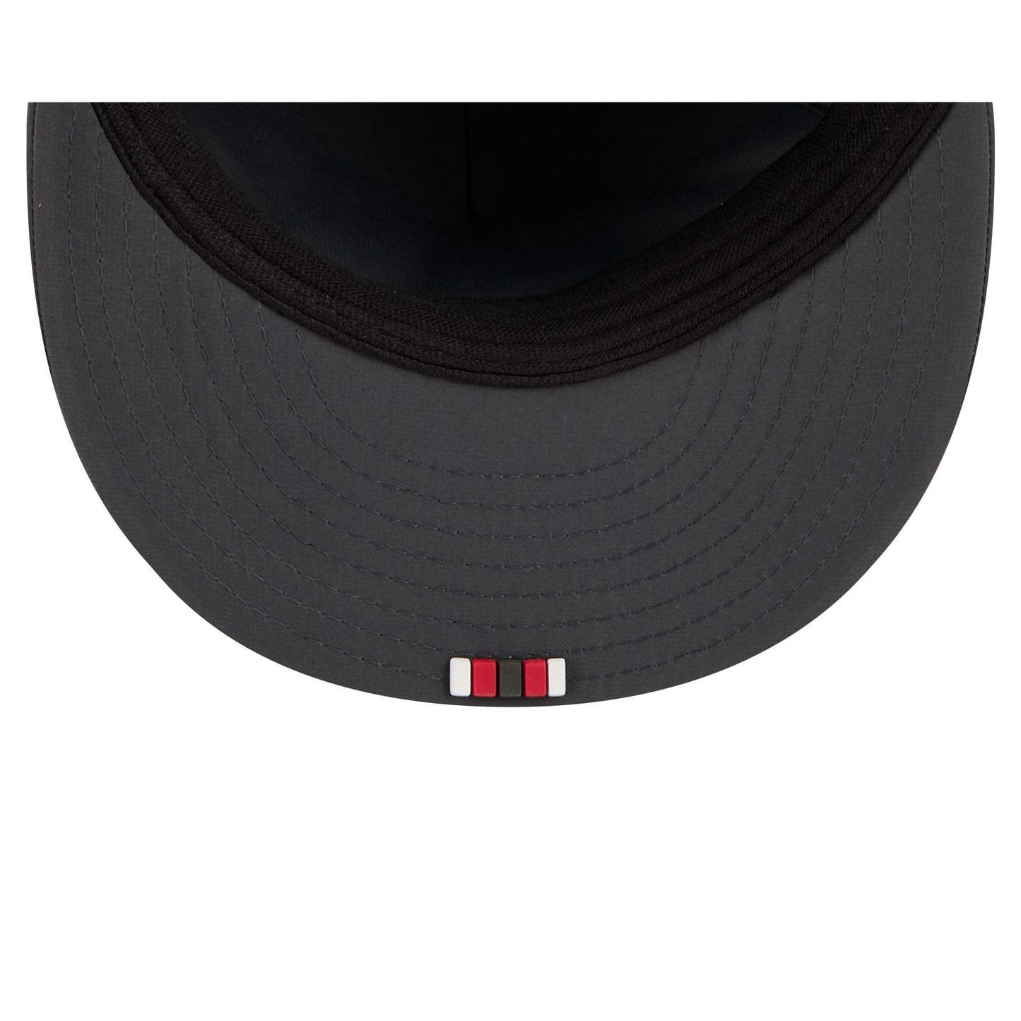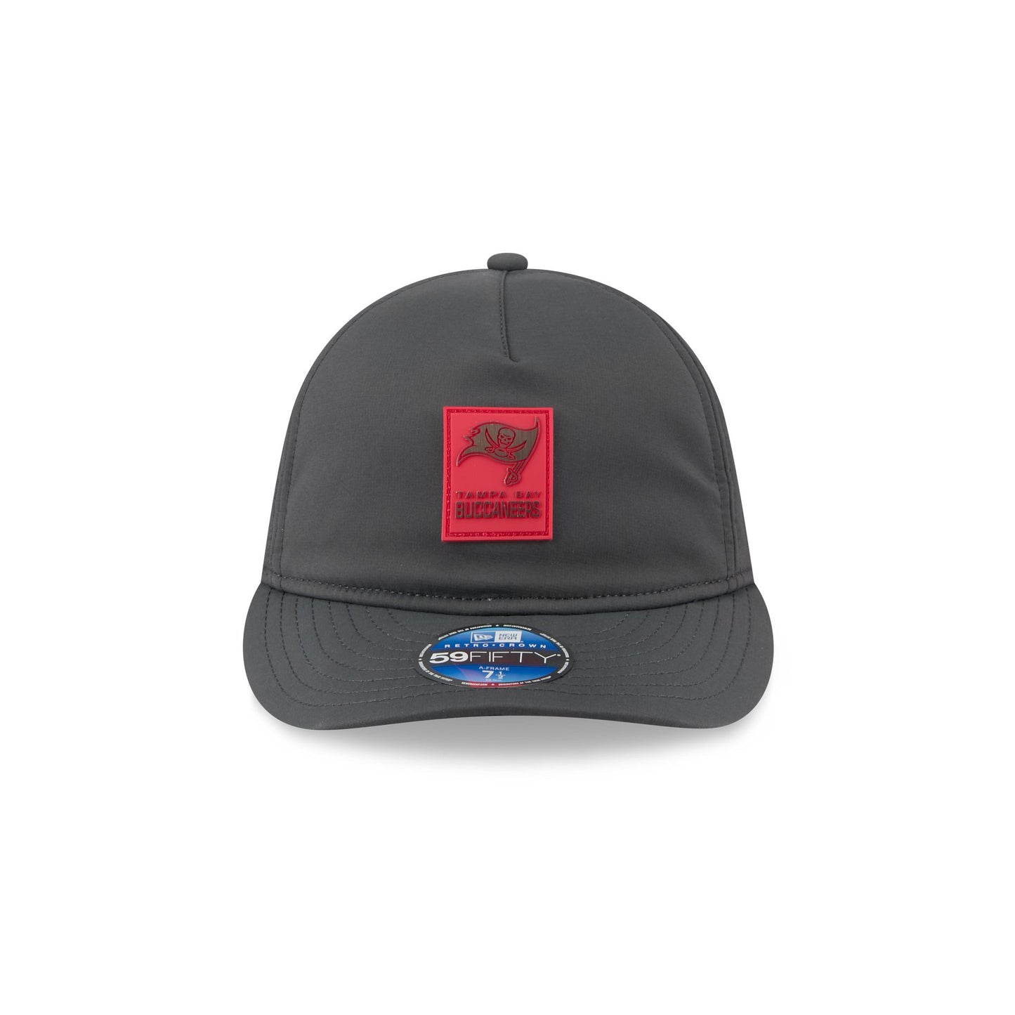 The Tampa Bay Buccaneers 2025 Sideline Cold Weather Steel Clouds Retro Crown 59FIFTY A-Frame Fitted Cap features a sewn-down silicone Buccaneers logo patch at the front panels with the Official NFL Shield logo at the rear. The cap has a water-repellent quill tech fabrication throughout, with an insulated crown and quick-dry cushioned sweatband. The undervisor is accented with a silicone transfer in the team’s colors.