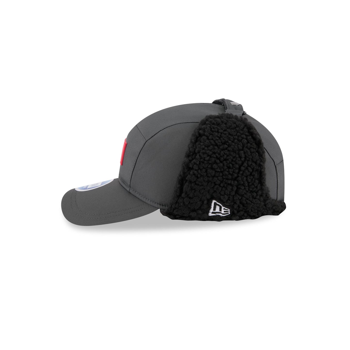 The Tampa Bay Buccaneers 2025 Sideline Cold Weather Steel Clouds Runner Dogear Adjustable Cap features a sewn-down silicone Buccaneers logo patch at the front panels with a water-repellent quill tech fabrication throughout with an insulated crown and sherpa lining. Additional details include a buckle strap button secured at the top of the crown that folds down to cover the ears, and an adjustable elastic toggle at the back for a customizable fit.
