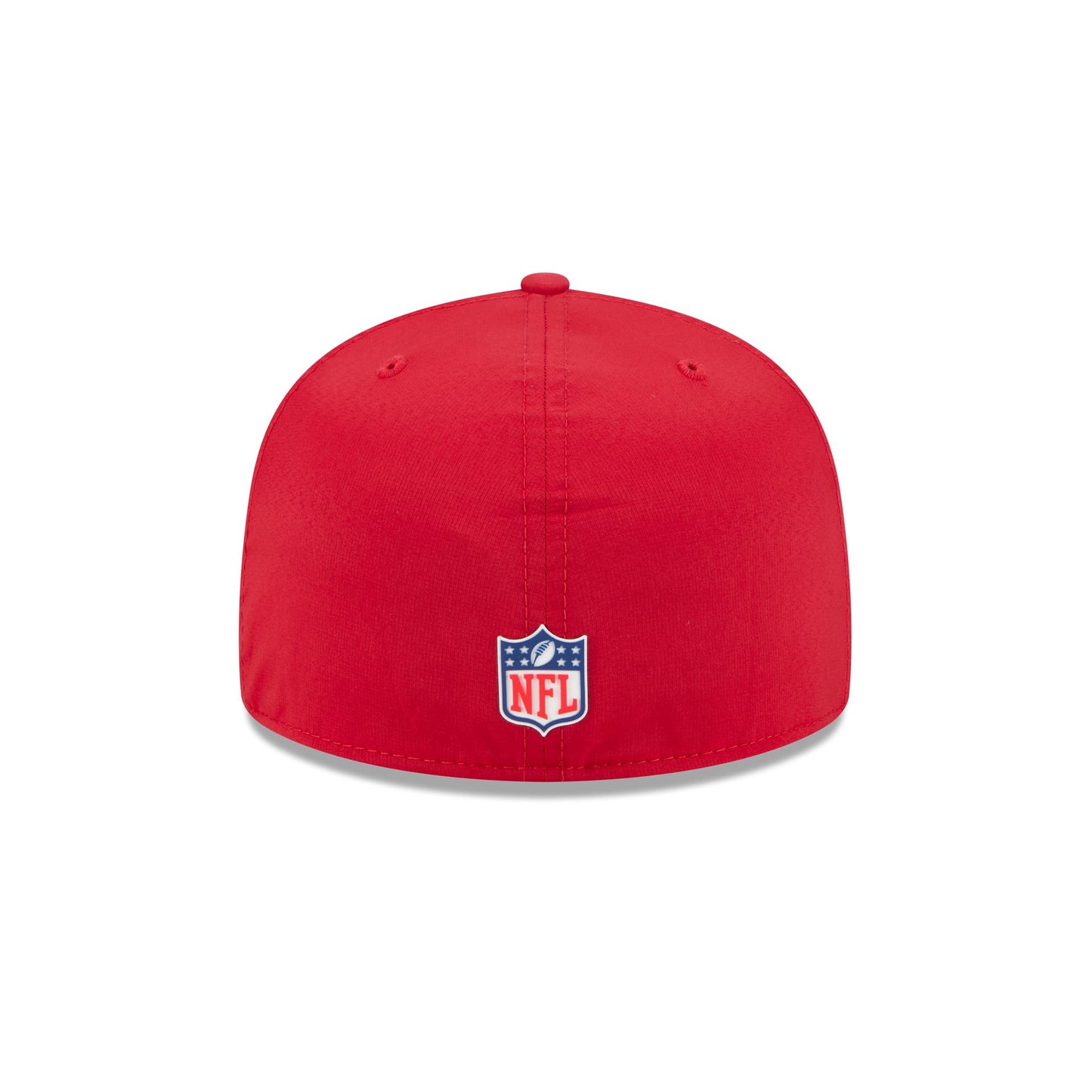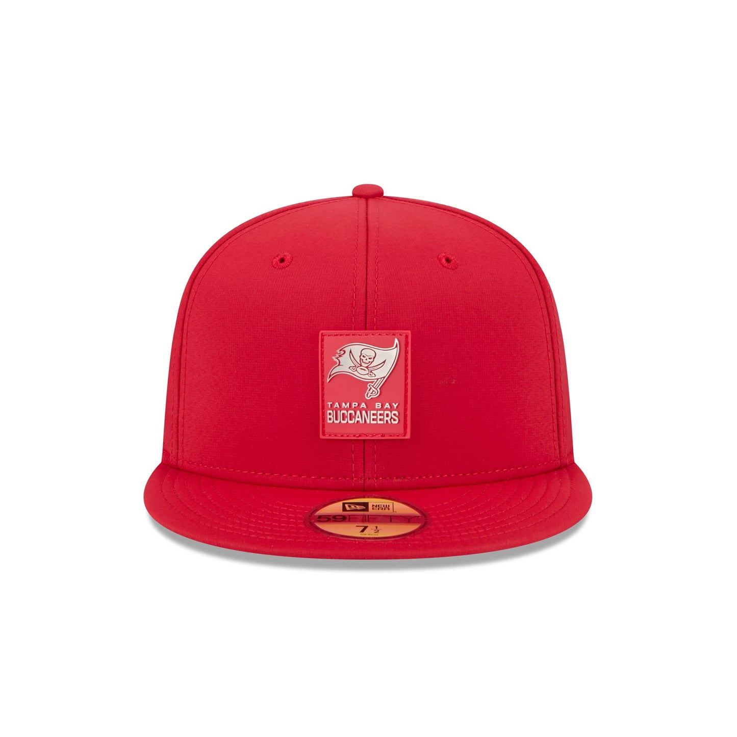 The Tampa Bay Buccaneers 2025 Sideline Hot Weather 59FIFTY Fitted Cap features a sewn-down silicone Buccaneers logo patch at the front panels with the Official NFL Shield logo at the rear. The cap has a water-repellent quill tech fabrication throughout, with a quick-dry cushioned sweatband to absorb moisture. The undervisor is accented with a silicone transfer in the team’s colors.