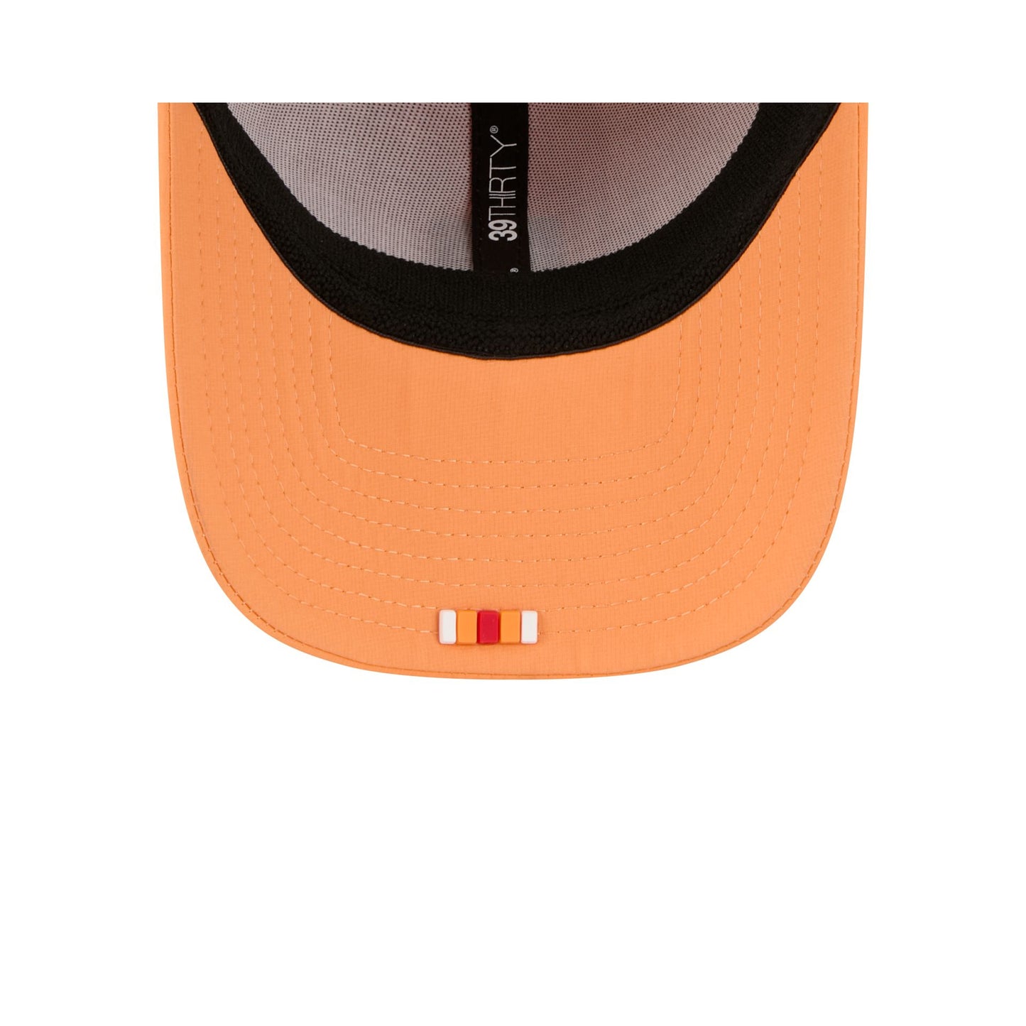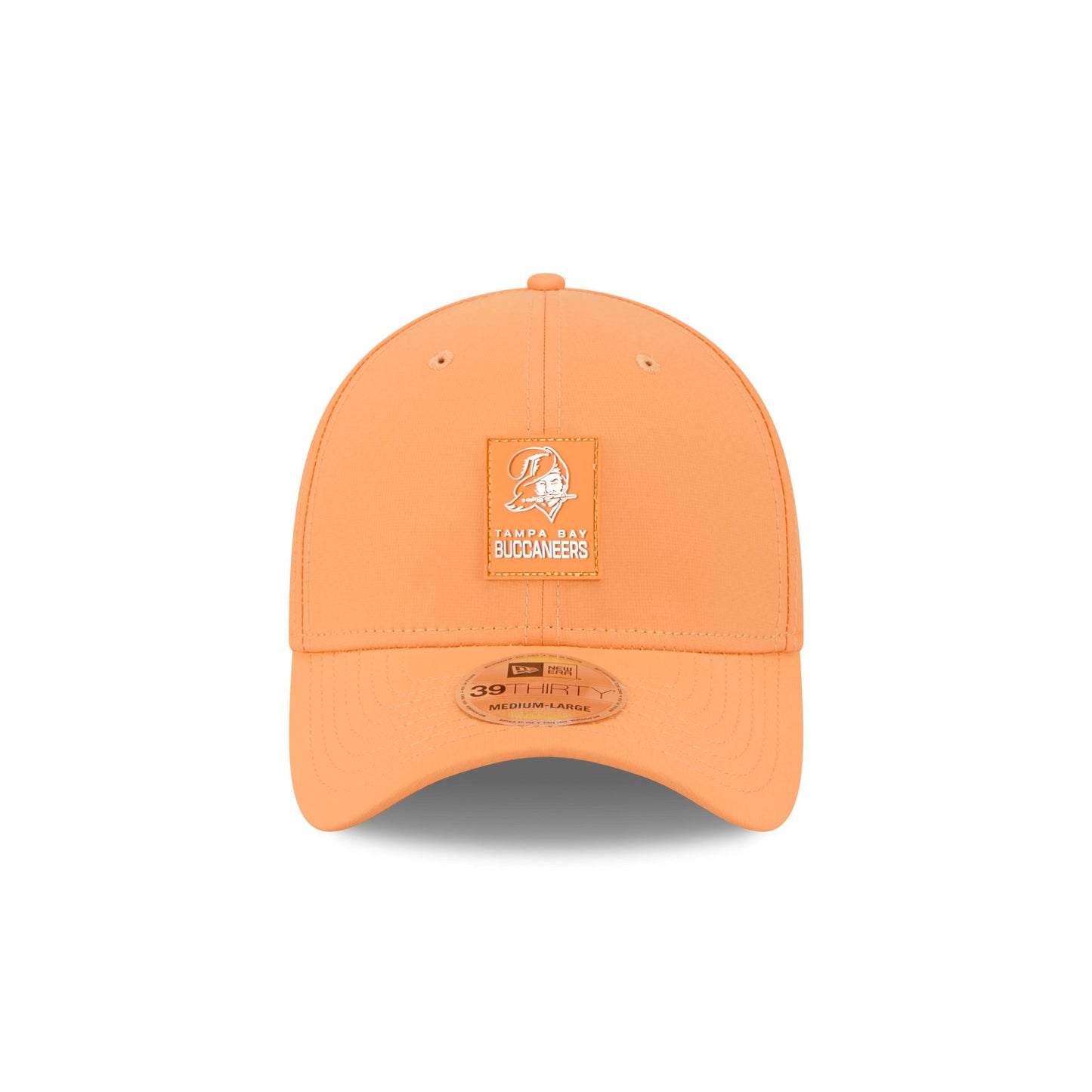 The Tampa Bay Buccaneers 2025 Sideline Hot Weather Historic 39THIRTY Stretch Fit features a sewn-down silicone Buccaneers historic logo patch at the front panels with the Official NFL Shield logo at the rear. The cap has a water-repellent quill tech fabrication throughout, with an insulated crown and quick-dry cushioned sweatband. The undervisor is accented with a silicone transfer in the team’s colors.