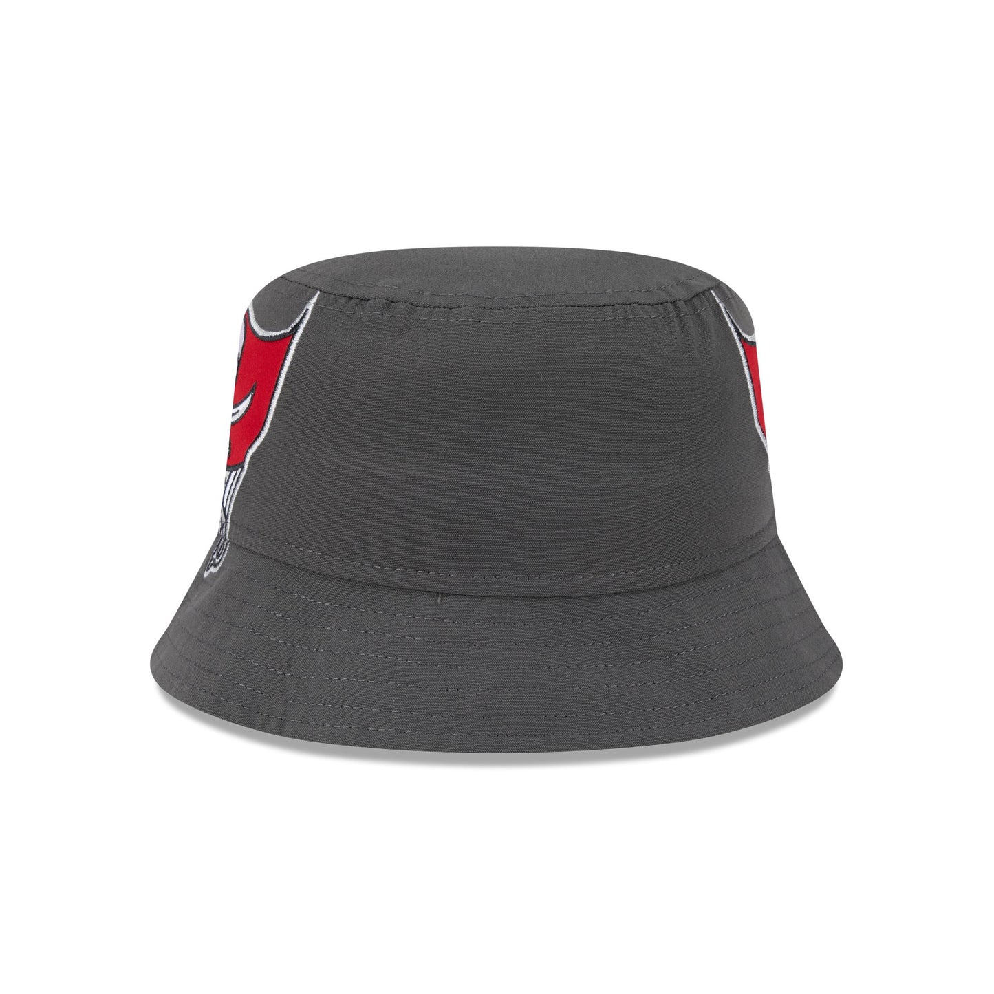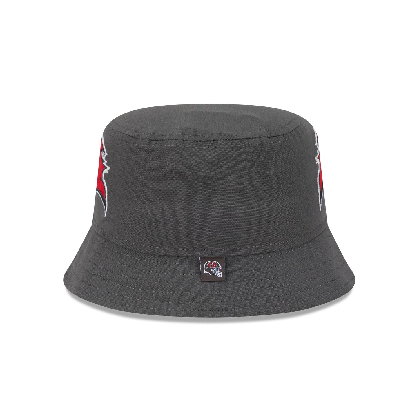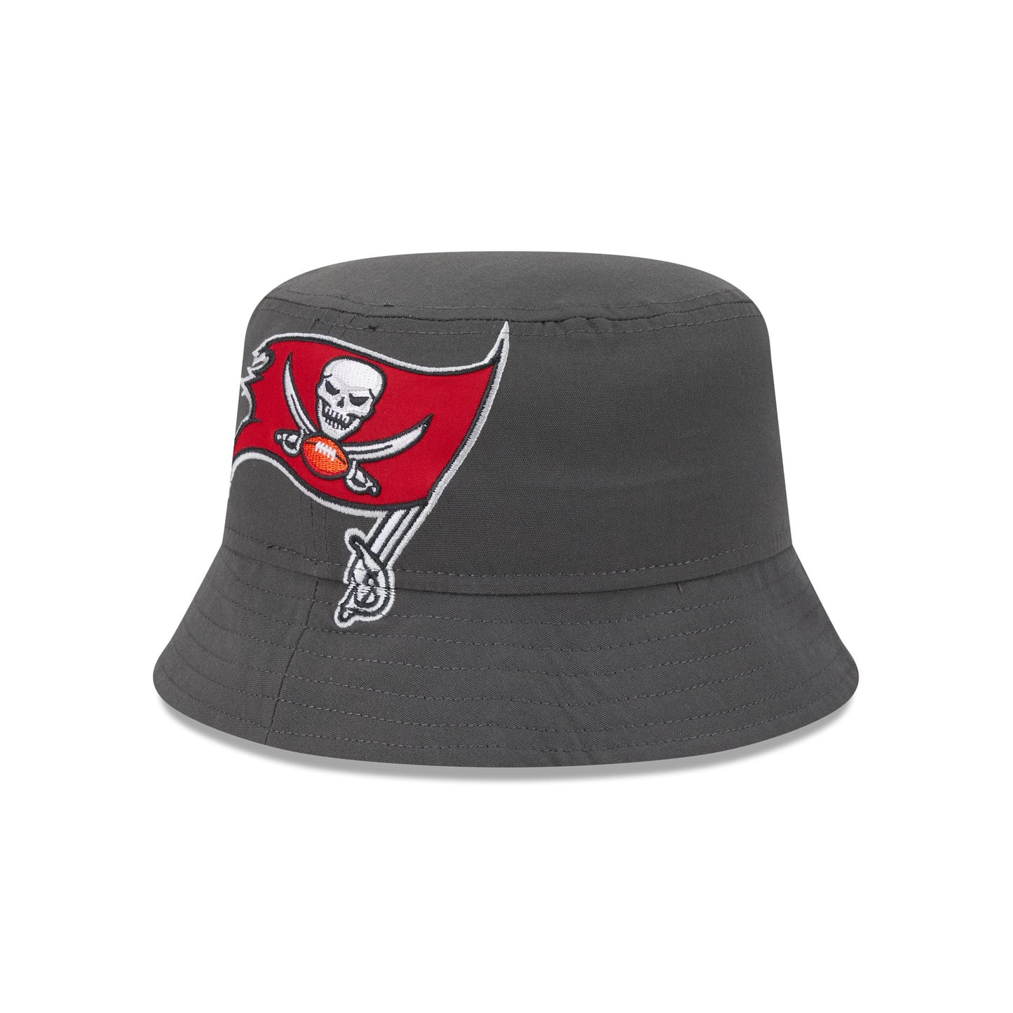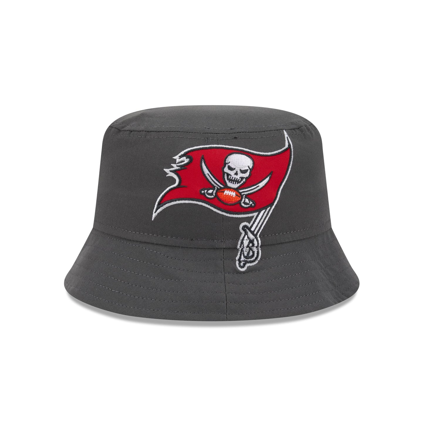 The Tampa Bay Buccaneers Helmet Bucket Hat features an embroidered Buccaneers helmet design throughout.