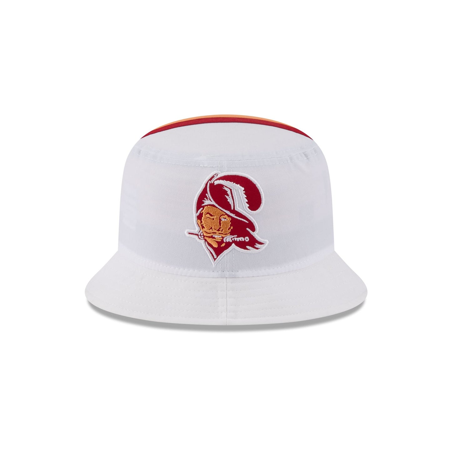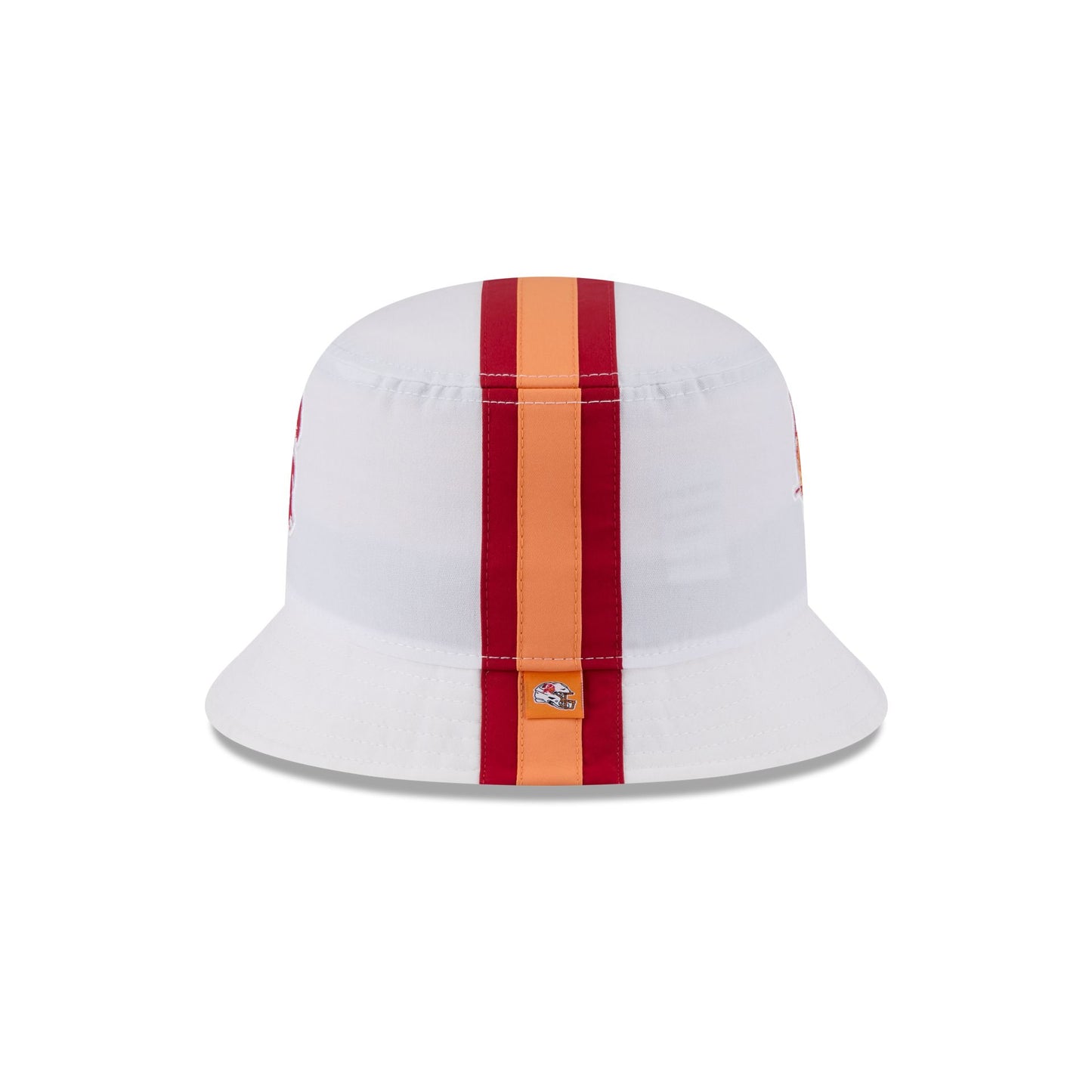 The Tampa Bay Buccaneers Historic Helmet Bucket Hat features an embroidered Buccaneers helmet design throughout.
