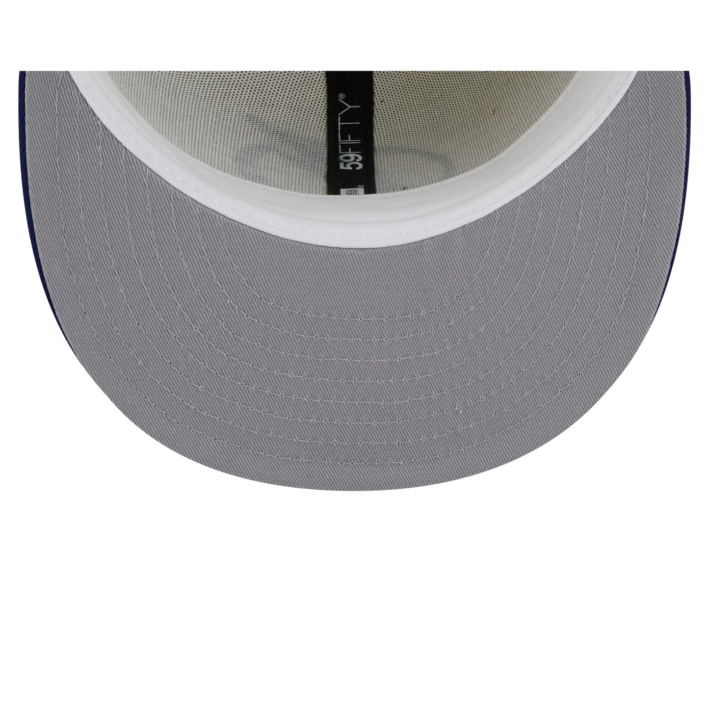 The Tampa Bay Lightning Chrome White 59FIFTY Fitted Cap features an embroidered Lightning logo at the front panels with a matching NHL Shield at the rear and a gray undervisor.