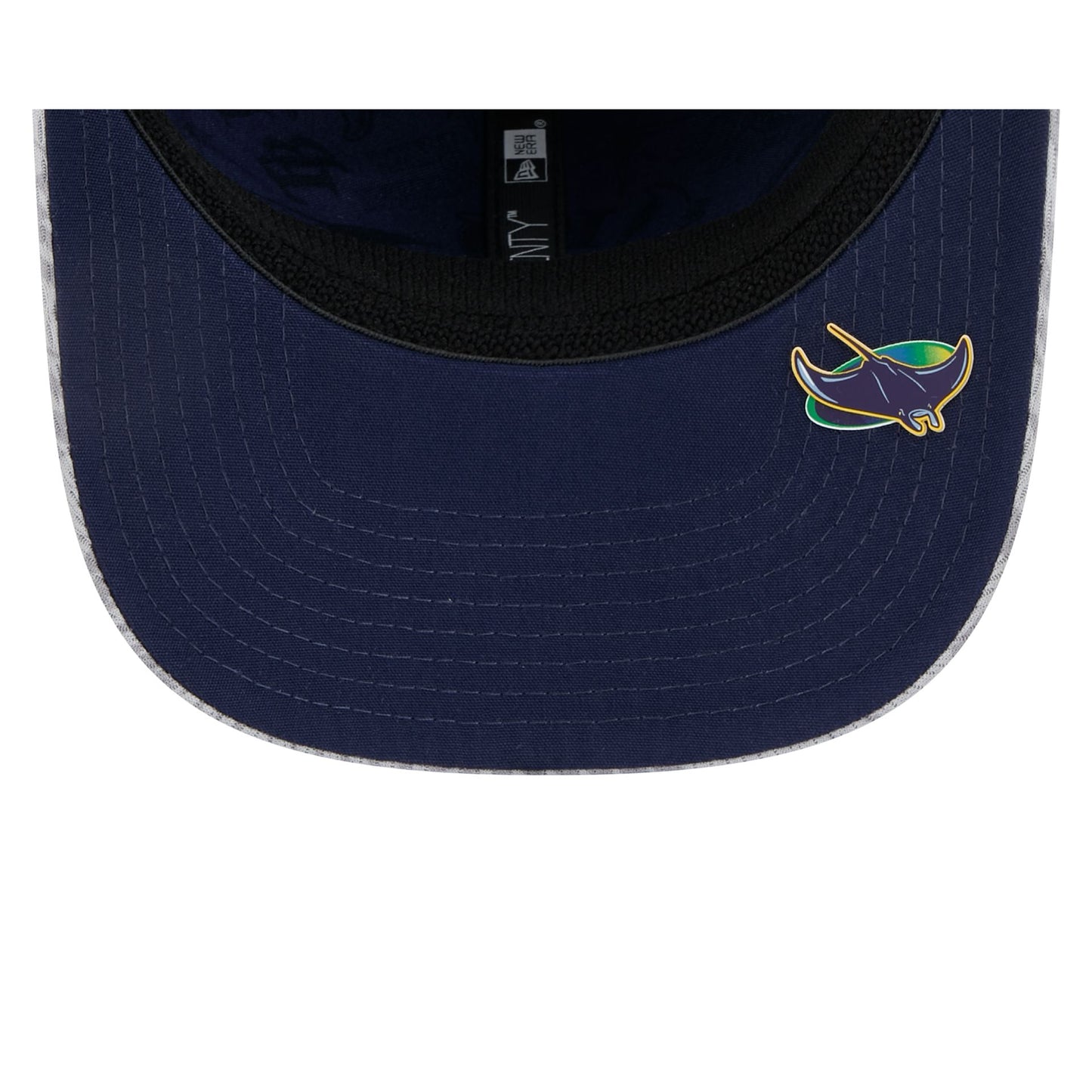 The Tampa Bay Rays 2025 Clubhouse Gray 9SEVENTY Stretch-Snap Cap features an embroidered Rays logo at the front panels with a matching MLB Batterman logo above a snapback closure at the rear and a dashmark mesh fabrication throughout. Additional details include a silicone team tag on the right-wear side and team logo on the undervisor.