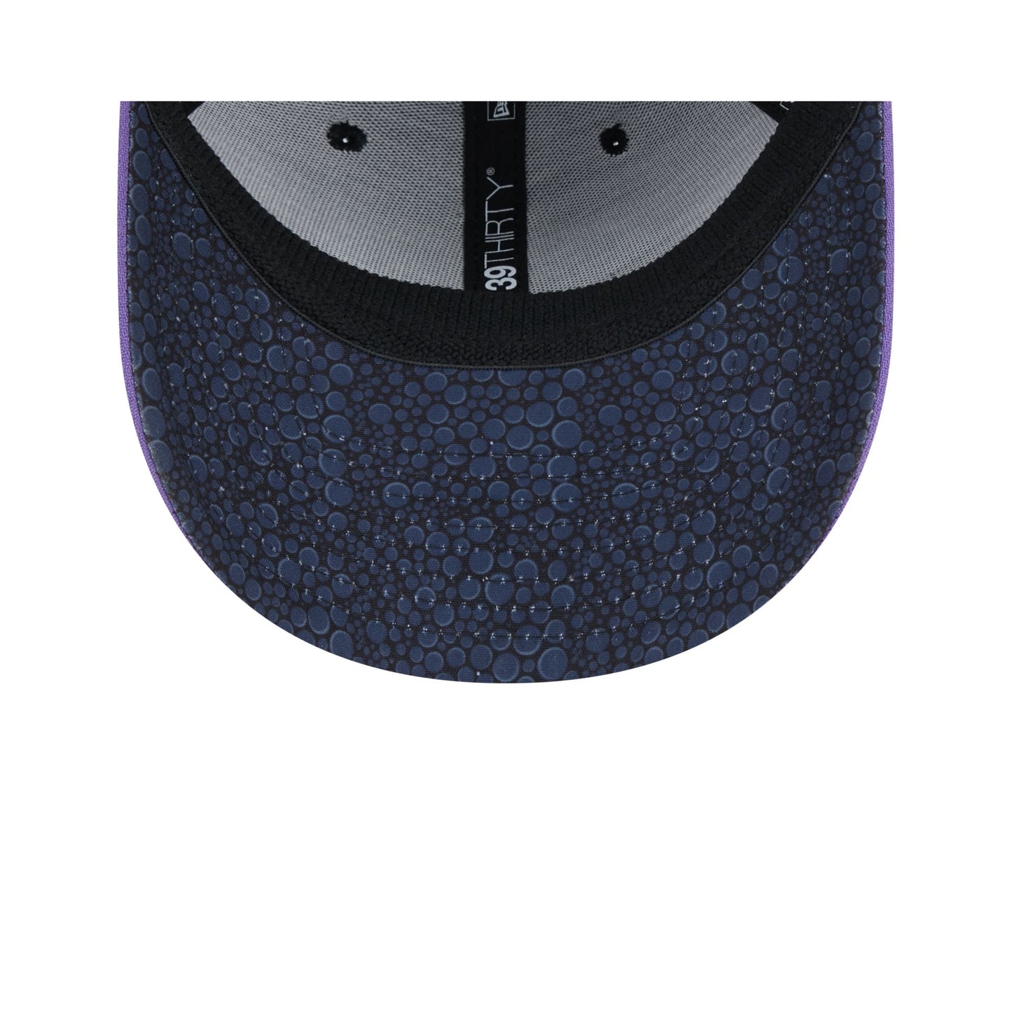 The Tampa Bay Rays City Connect 39THIRTY Stretch Fit Cap draws originality from unique elements tied to the surrounding city and features an embroidered Rays logo at the front panels with matching accents including a team wordmark at the rear and a patterned undervisor.