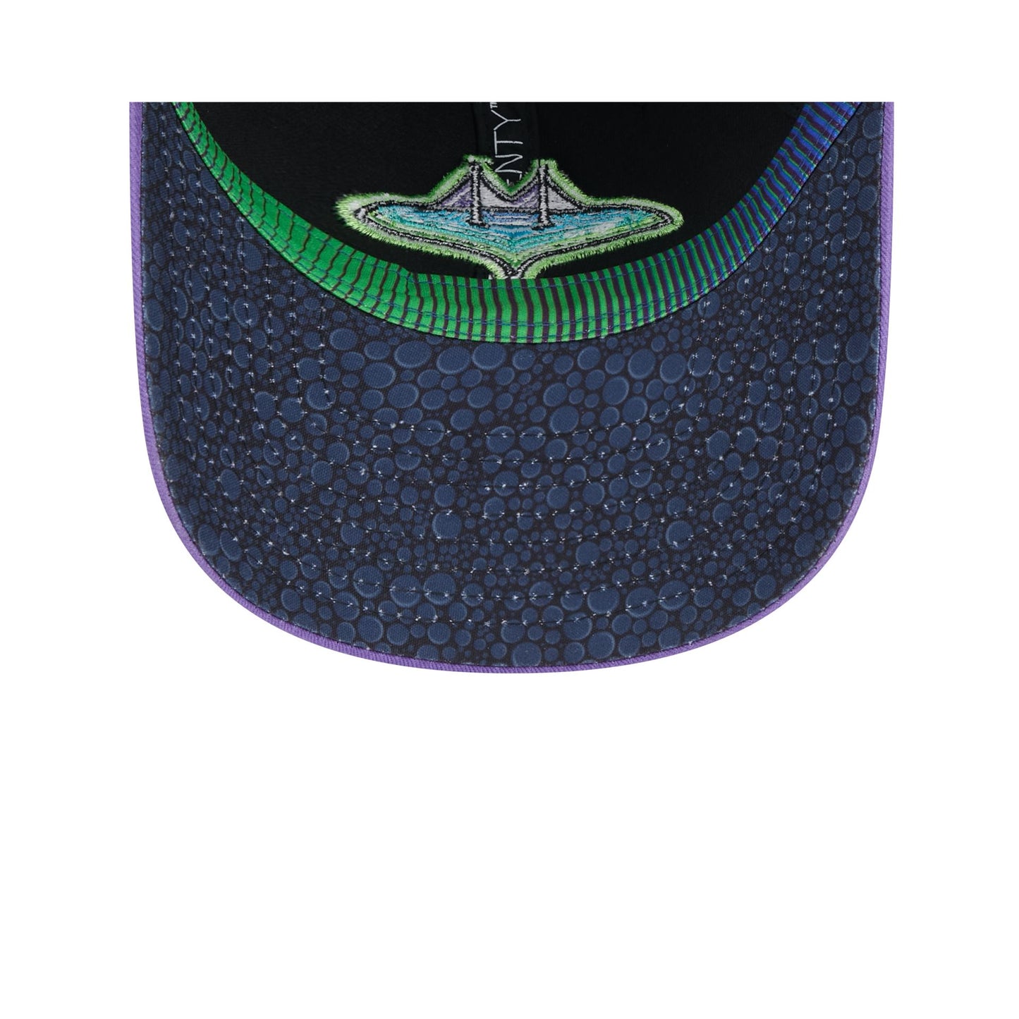 The Tampa Bay Rays City Connect 9TWENTY Adjustable Cap draws originality from unique elements tied to the surrounding city and features an embroidered Rays logo at the front panels with a woven team logo tag on an adjustable D-Ring closure at the rear.