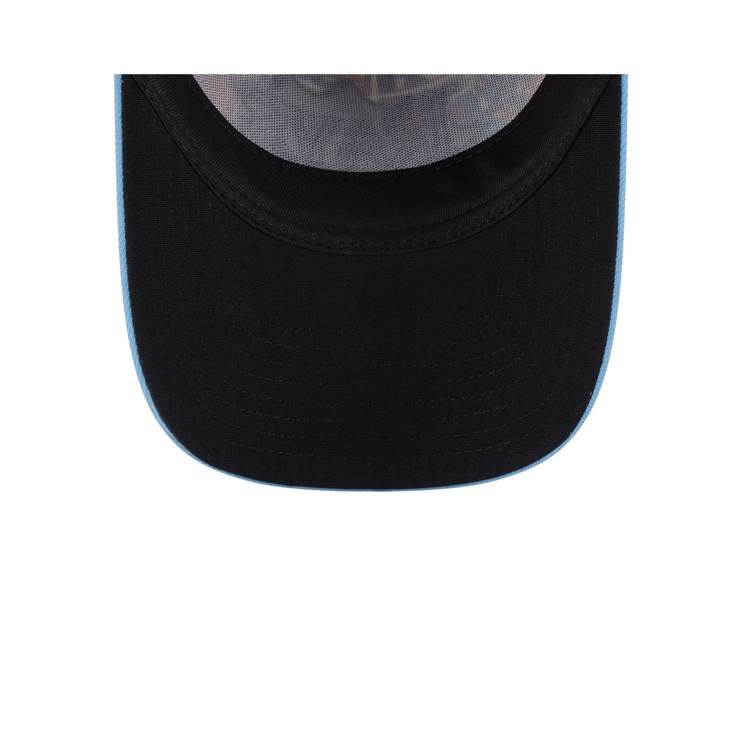 The Tampa Bay Rays Diamond Hero Edition 9FORTY A-Frame Snapback features an embroidered Rays onomatopoeia pop wordmark at the front panels with baseball comic book prints at the front and back panel. Additional details include a ZOOM! wordmark at the left-wear side, the MLB Batterman logo above a snapback closure at the rear, and a black undervisor.