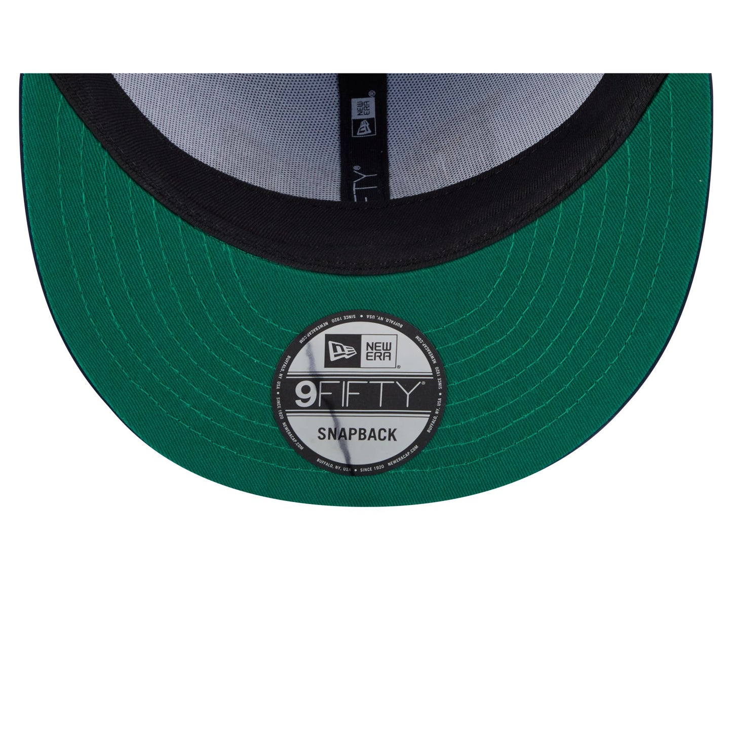 The Tampa Bay Rays Satin Pin 9FIFTY Snapback features an embroidered Rays wordmark at the front panels against a satin fabrication throughout the cap and a logo at the right-wear side. Additional details include a New Era Pin at the front left panel a snapback closure at the rear, and a green undervisor.