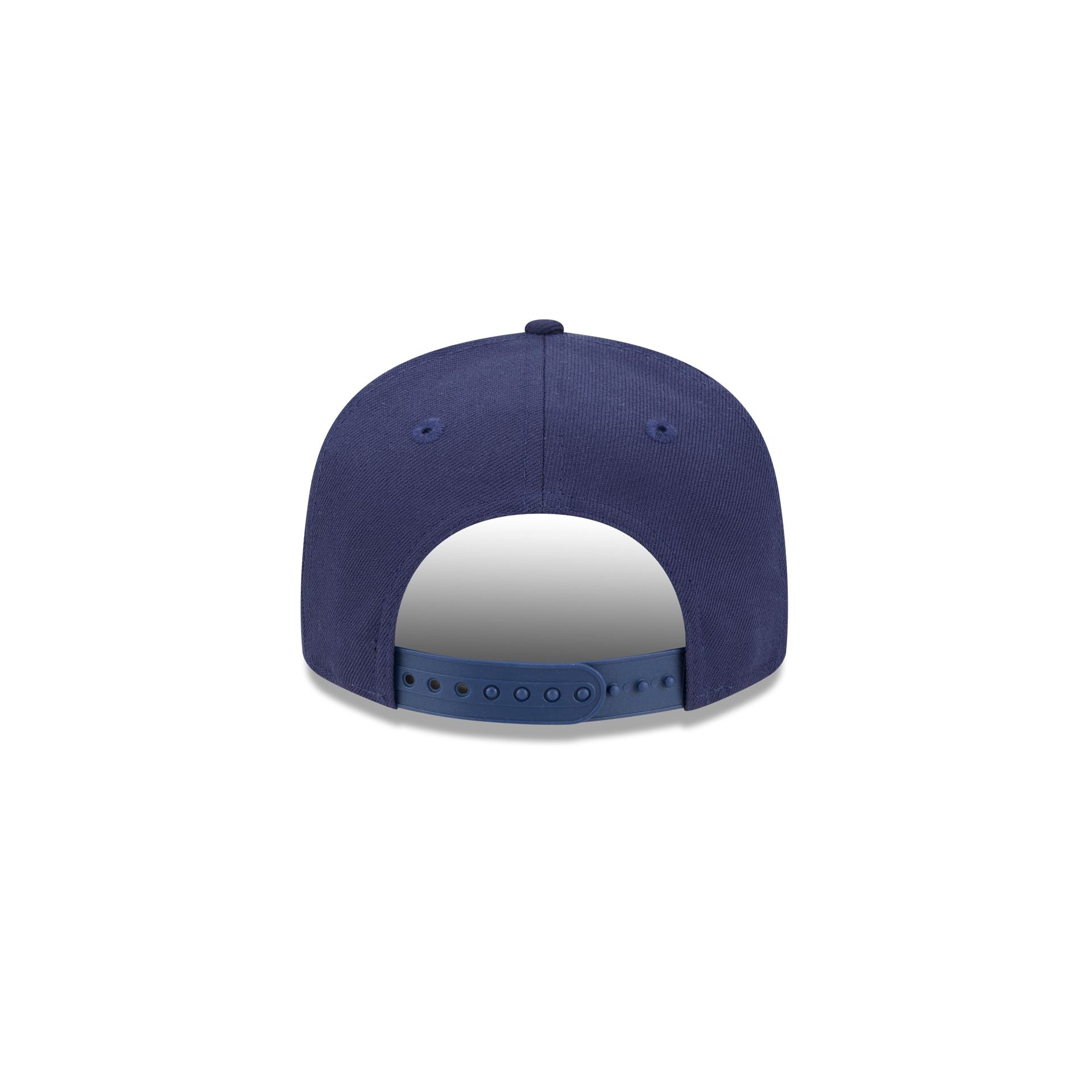 The Tampa Bay Rays Kids 9FIFTY Snapback Hat features an embroidered Rays wordmark at the front panels with a matching team logo at the right-wear side. Additional details include a gray undervisor and a snapback closure at the rear.