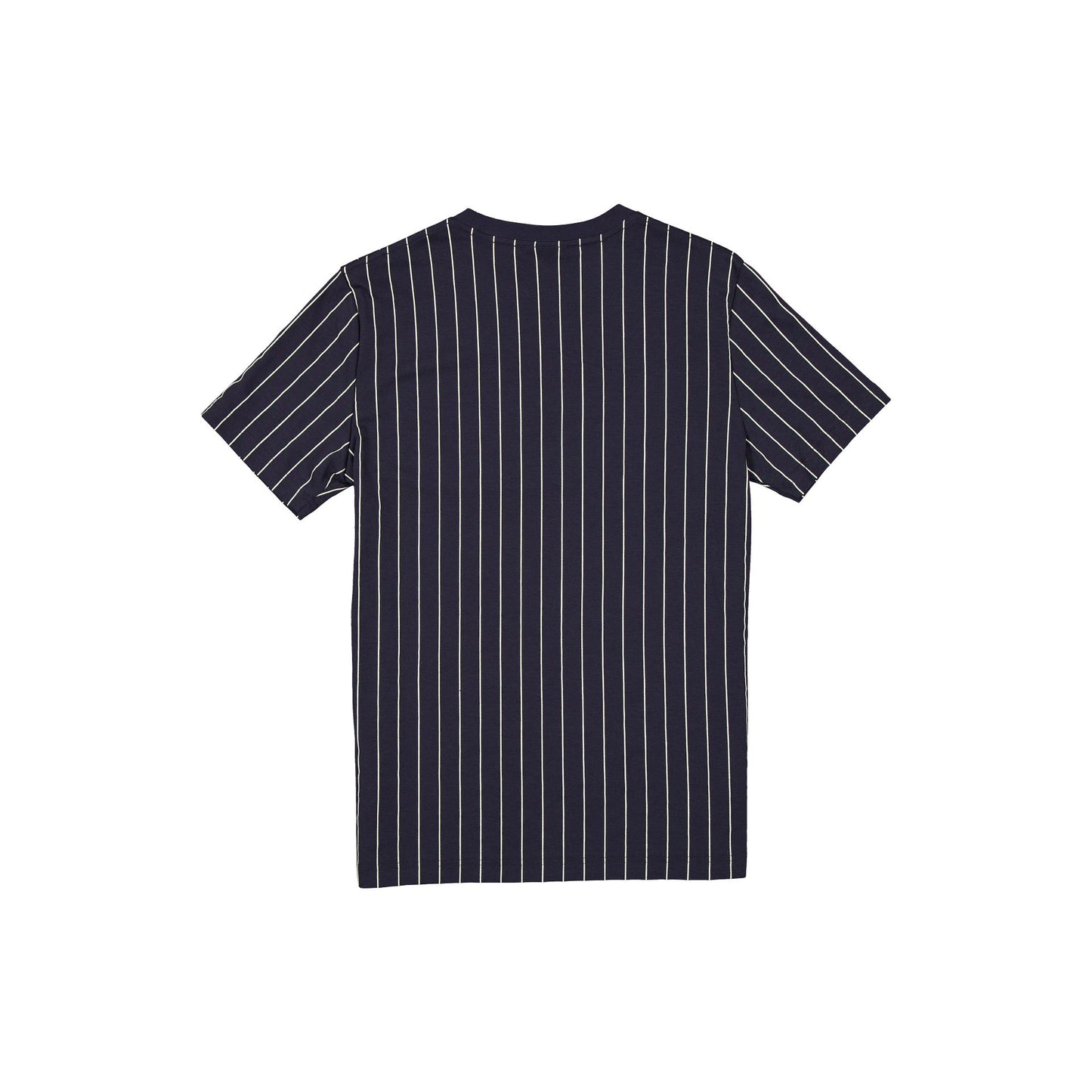 The Tampa Bay Rays Throwback Pinstripe Wordmark T-Shirt features a twill applique Rays wordmark and logo at the front with a New Era jock tag at the left hip.
