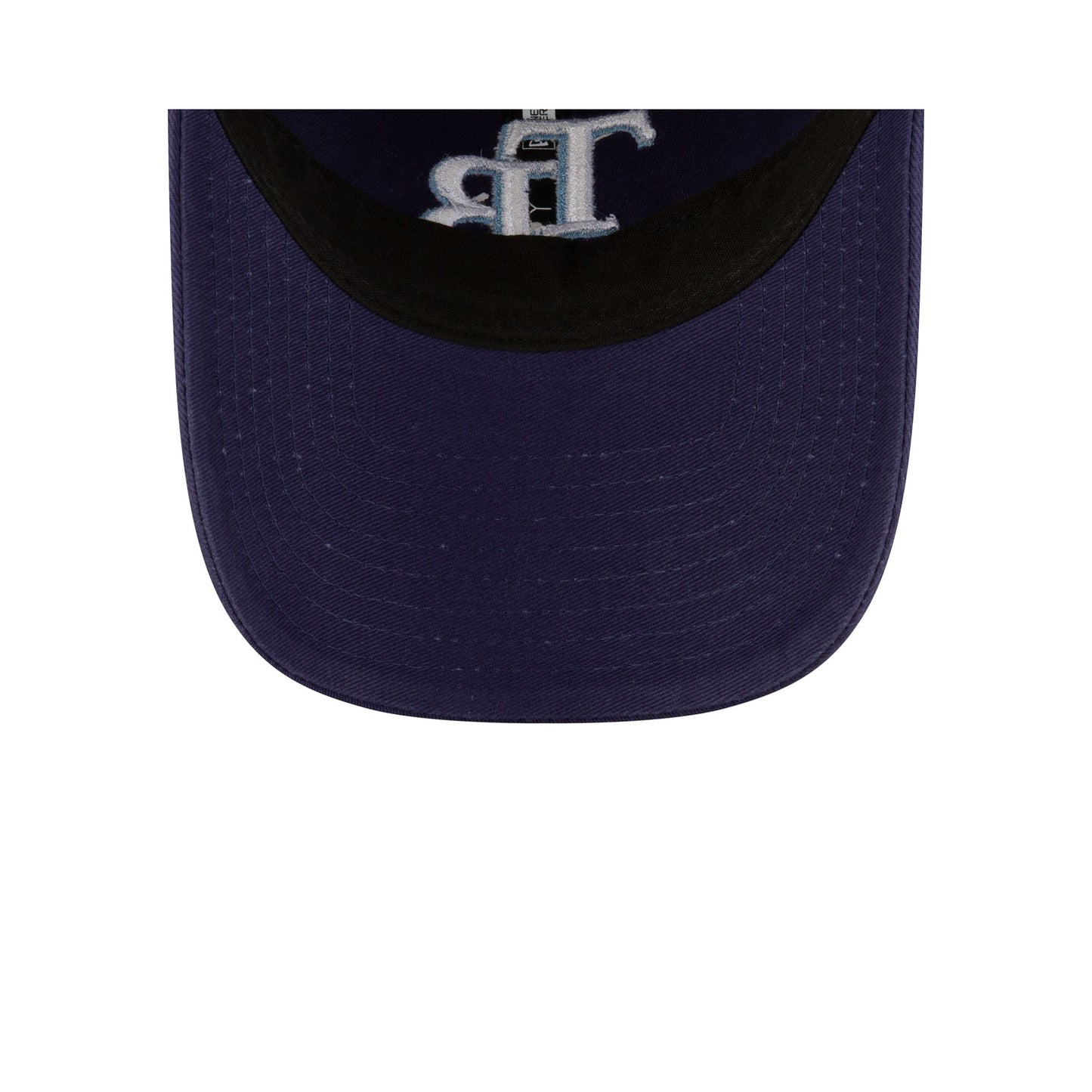 The Tampa Bay Rays Women's Core Classic 9TWENTY Adjustable Cap features an embroidered Rays at the front panels with a woven tab displaying the team logo and an adjustable closure at the rear.