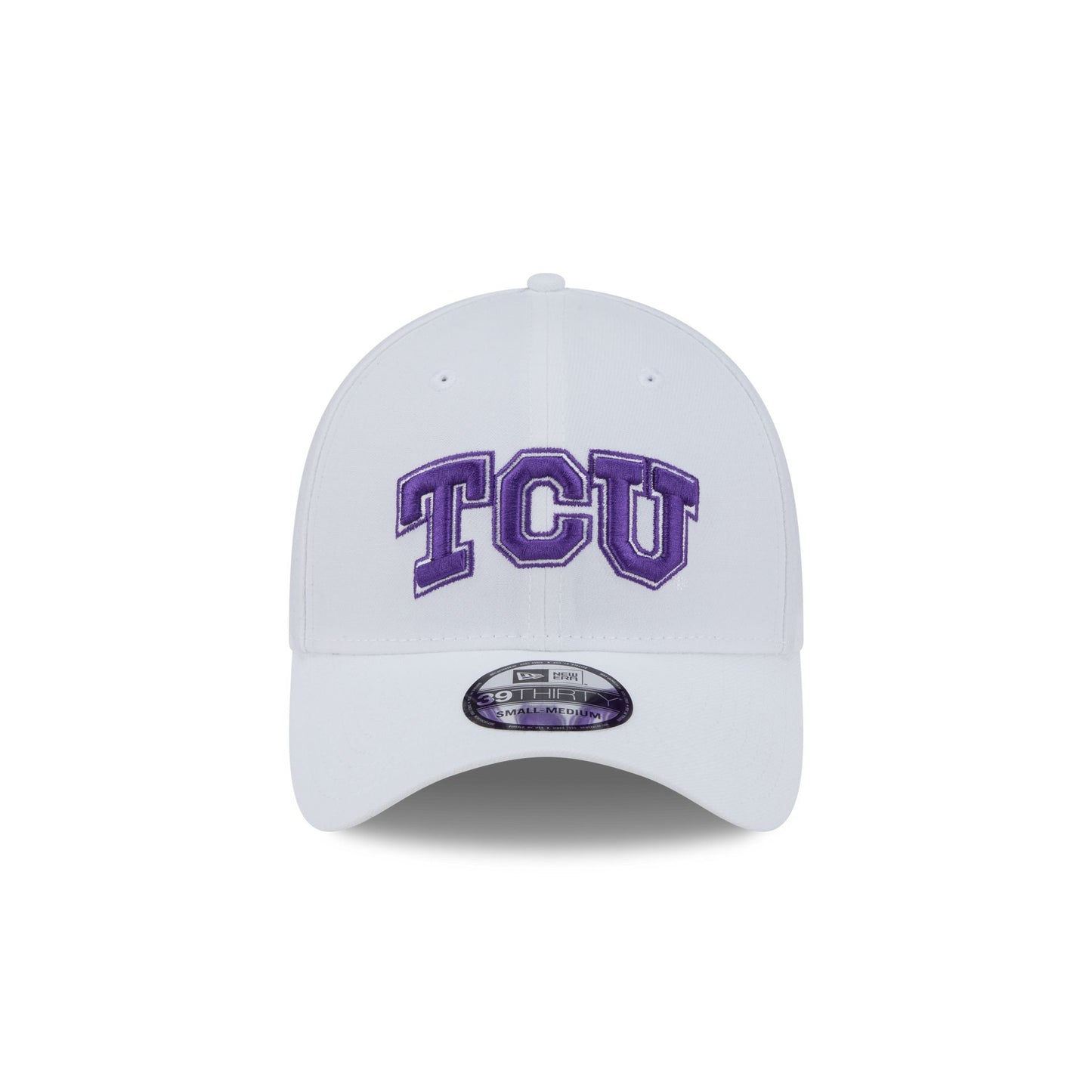 The TCU Horned Frogs Optic White 39THIRTY Stretch Fit features an embroidered Horned Frogs logo at the front panels with a team wordmark at the rear.