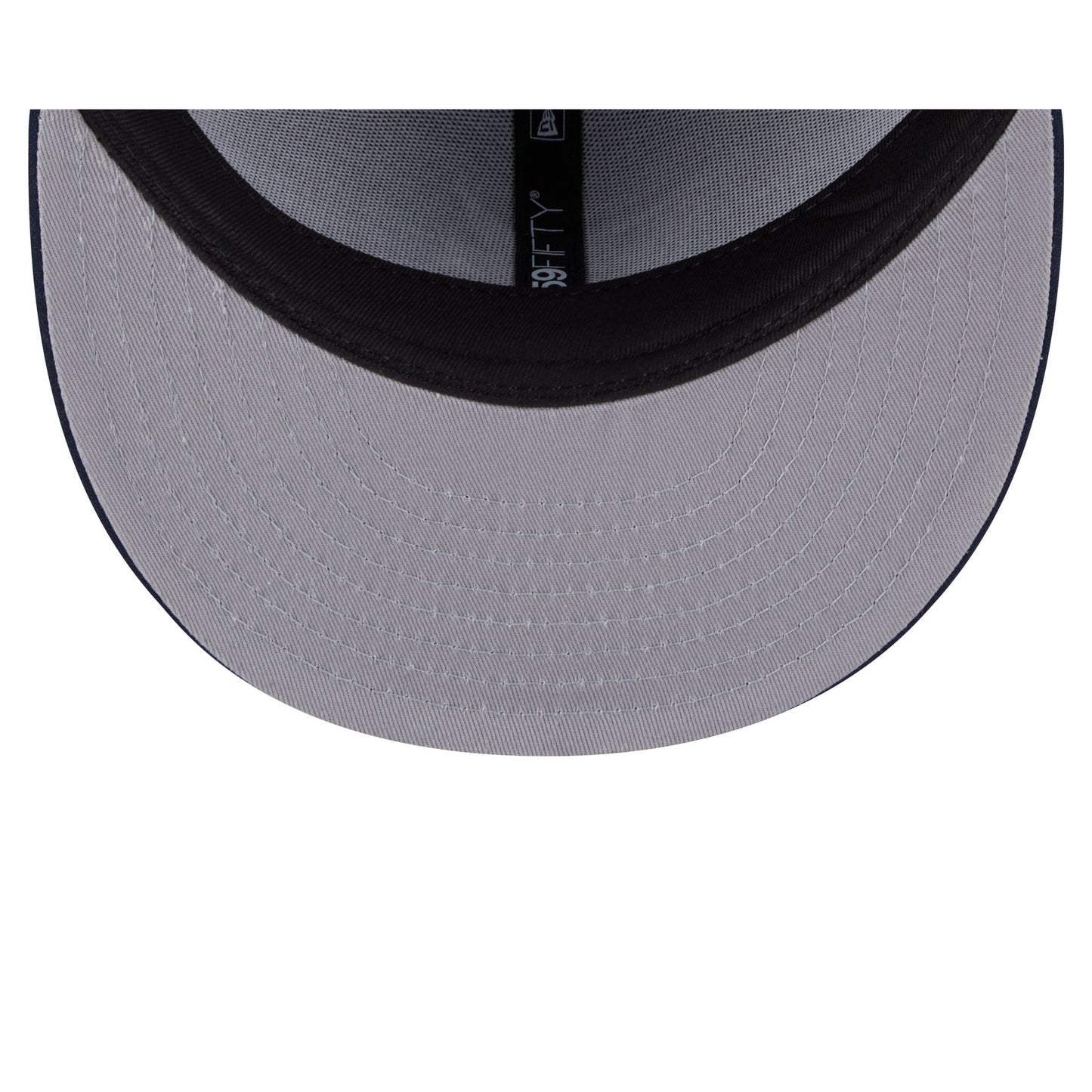 The Just Caps Team Linen Atlanta Braves 59FIFTY Fitted Cap features an embroidered Braves logo at the front panels against a linen fabrication throughout the cap with a matching MLB Batterman logo at the rear. Additional details include a 40th Anniversary patch at the right-wear side and a gray undervisor.