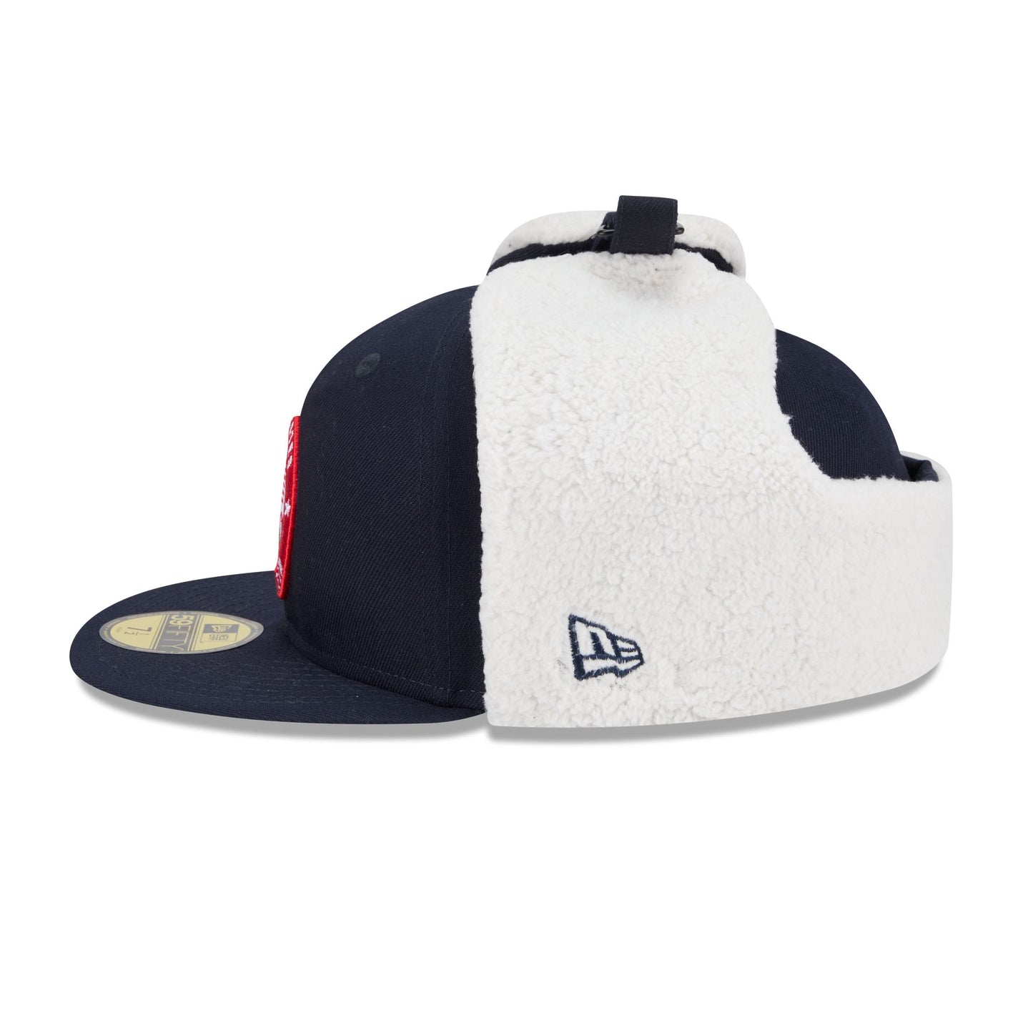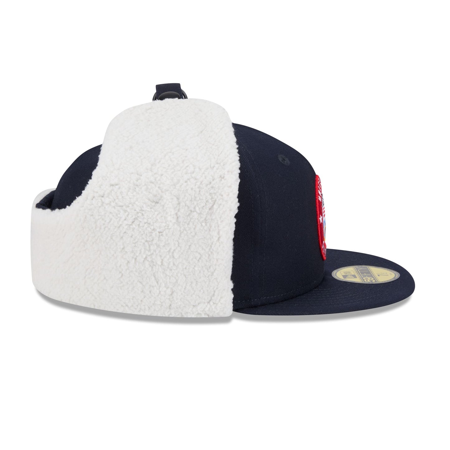 The Team USA 2026 Winter Olympics Dog Ear 59FIFTY Fitted Cap features an embroidered Team USA circle logo at the front panels with sherpa dog ears to strap around the ears.