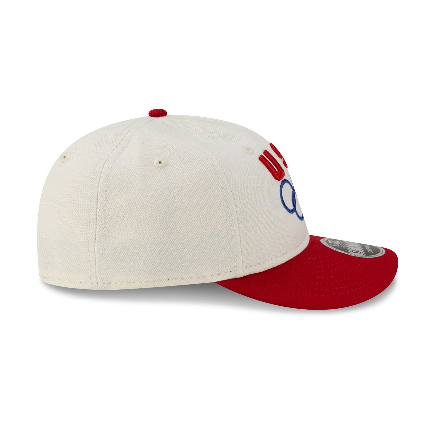 The Team USA Chrome White Red Retro Crown 9FIFTY Snapback features an embroidered Team USA logo at the front panels with a red visor and an adjustable snapback closure at the rear.