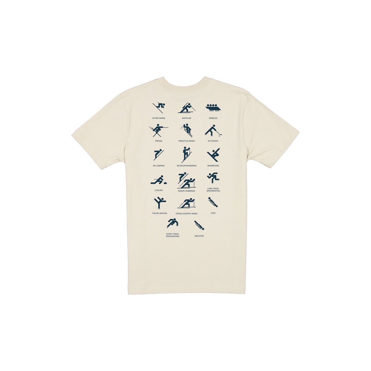 The Team USA Winter Olympics Pictogram Chrome T-Shirt features a screen-printed USA wordmark above a shield at the front with the Winter Olympics sports pictograms at the rear.