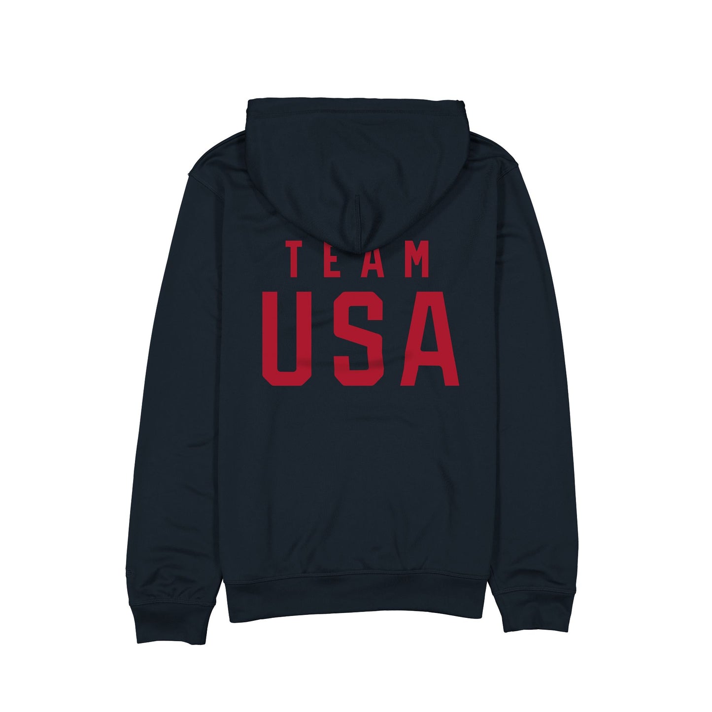 The Team USA Winter Olympics Shield Hoodie features a screen-printed USA shield at the front with a team wordmark at the rear.