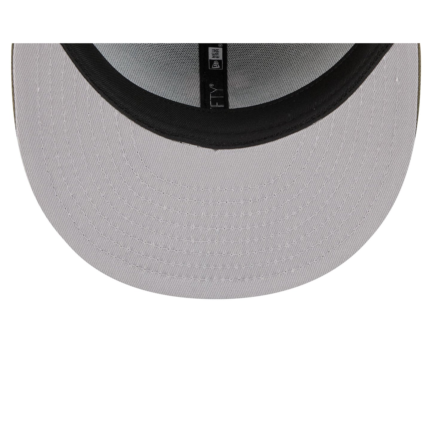 The Tecos 2 Laredos Olive 59FIFTY Fitted Cap features an embroidered Tecos logo at the front panels with a matching team wordmark at the rear and a gray undervisor.