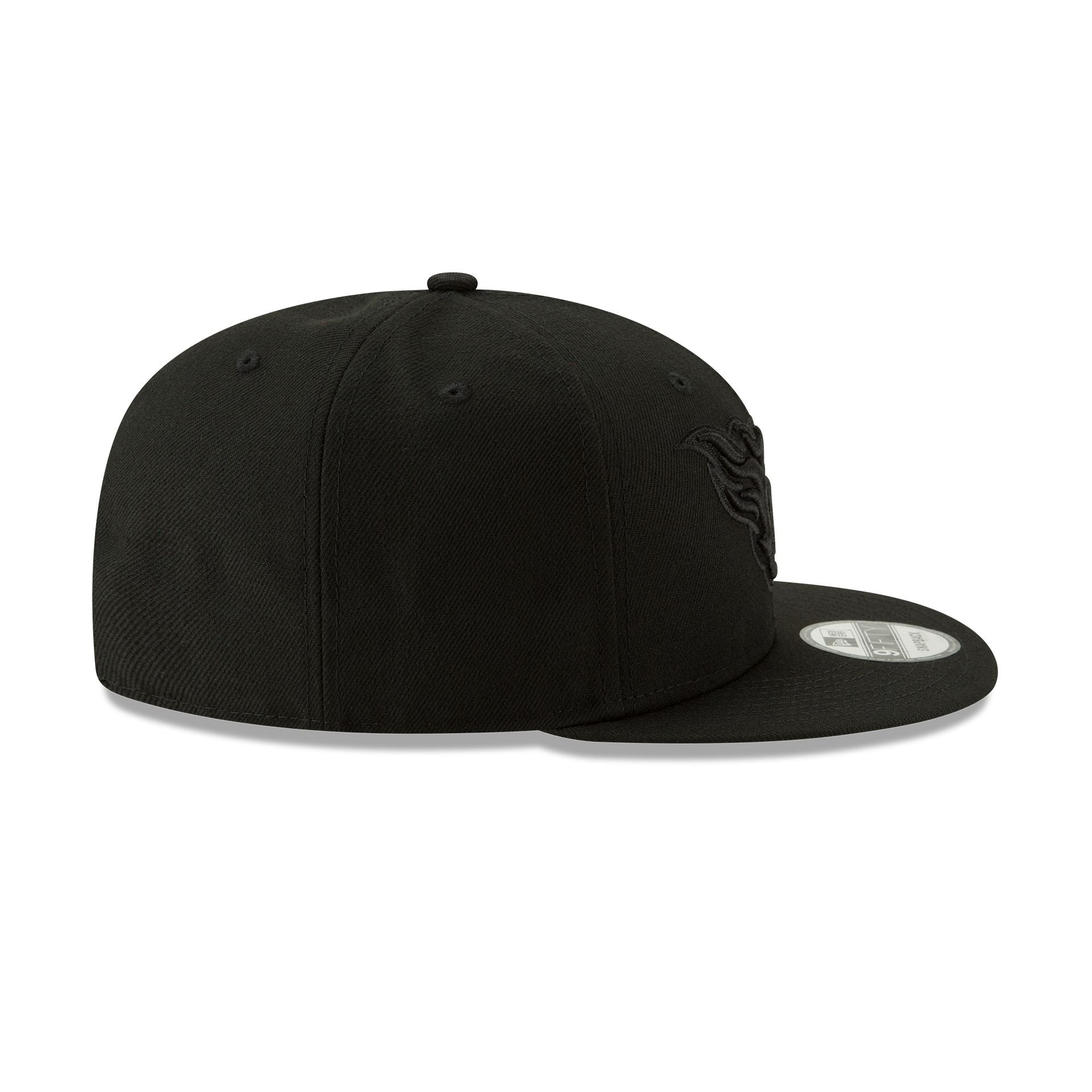 The Tennessee Titans Basic Black on Black 9FIFTY Snapback features an embroidered Titans logo at the front panels with an adjustable snapback closure at the rear.