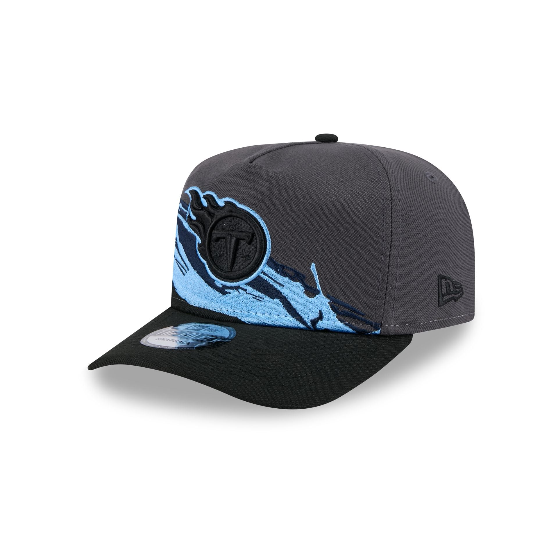 The Tennessee Titans Brushstroke Golfer features an embroidered black Titans logo at the front panels against a team color brushstroke. Additional details include a snapback closure at the rear and a gray undervisor.