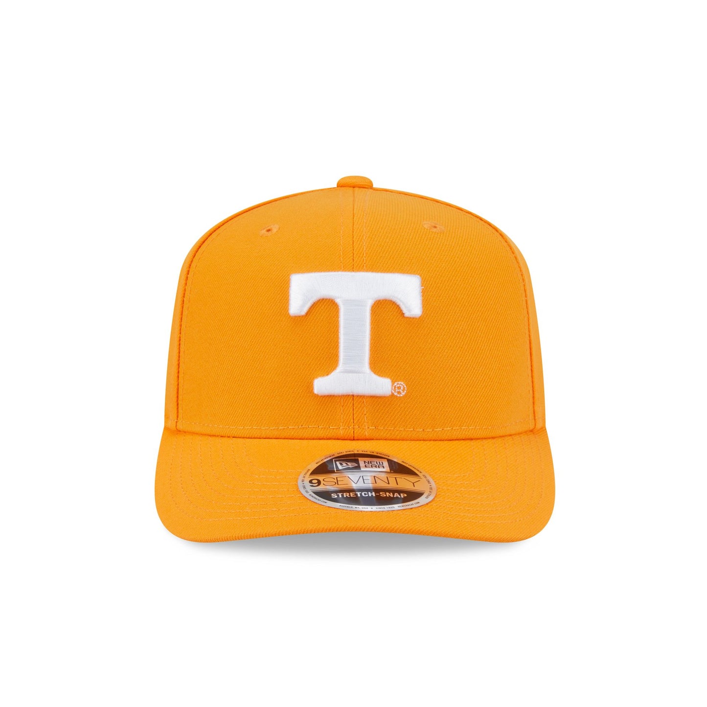 The Tennessee Volunteers Team 9SEVENTY Stretch-Snap Cap features an embroidered Volunteers logo at the front panels with an alternate team logo above a snapback closure at the rear and a gray undervisor.