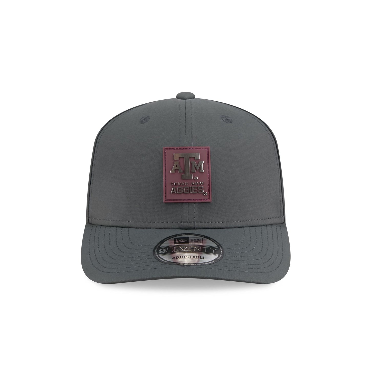 The Texas A&M Aggies Cold Weather 9SEVENTY Stretch-Snap features a sewn-down silicone Aggies logo patch at the front panels with a water-repellent quill tech fabrication throughout and an insulated crown with a quick-dry cushioned sweatband. Additional details include a team logo on a soft silicone snapback closure at the rear with team color silicone transfer details at the undervisor.