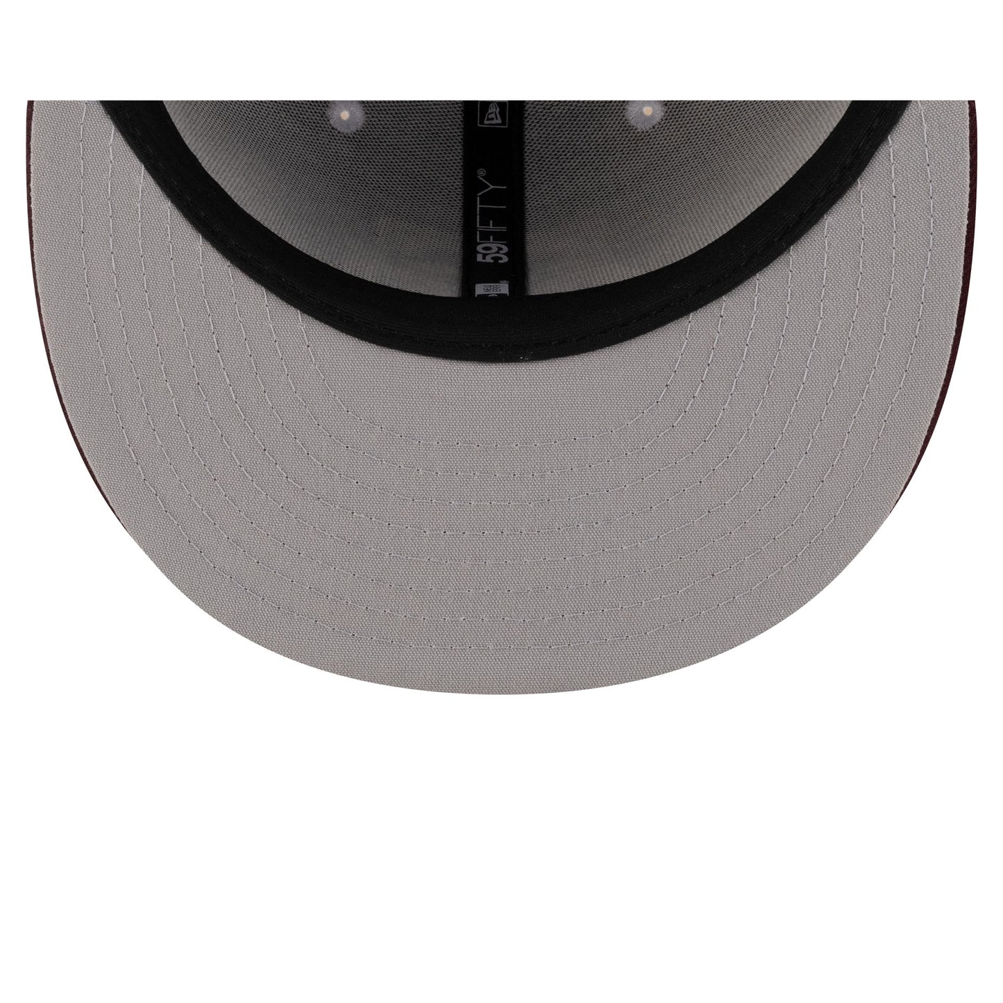 The Official On-Field cap for the Texas A&M Aggies baseball, the On Field 59FIFTY Fitted Cap features an embroidered Aggies logo at the front panels with an alternate logo at the rear and a gray undervisor.