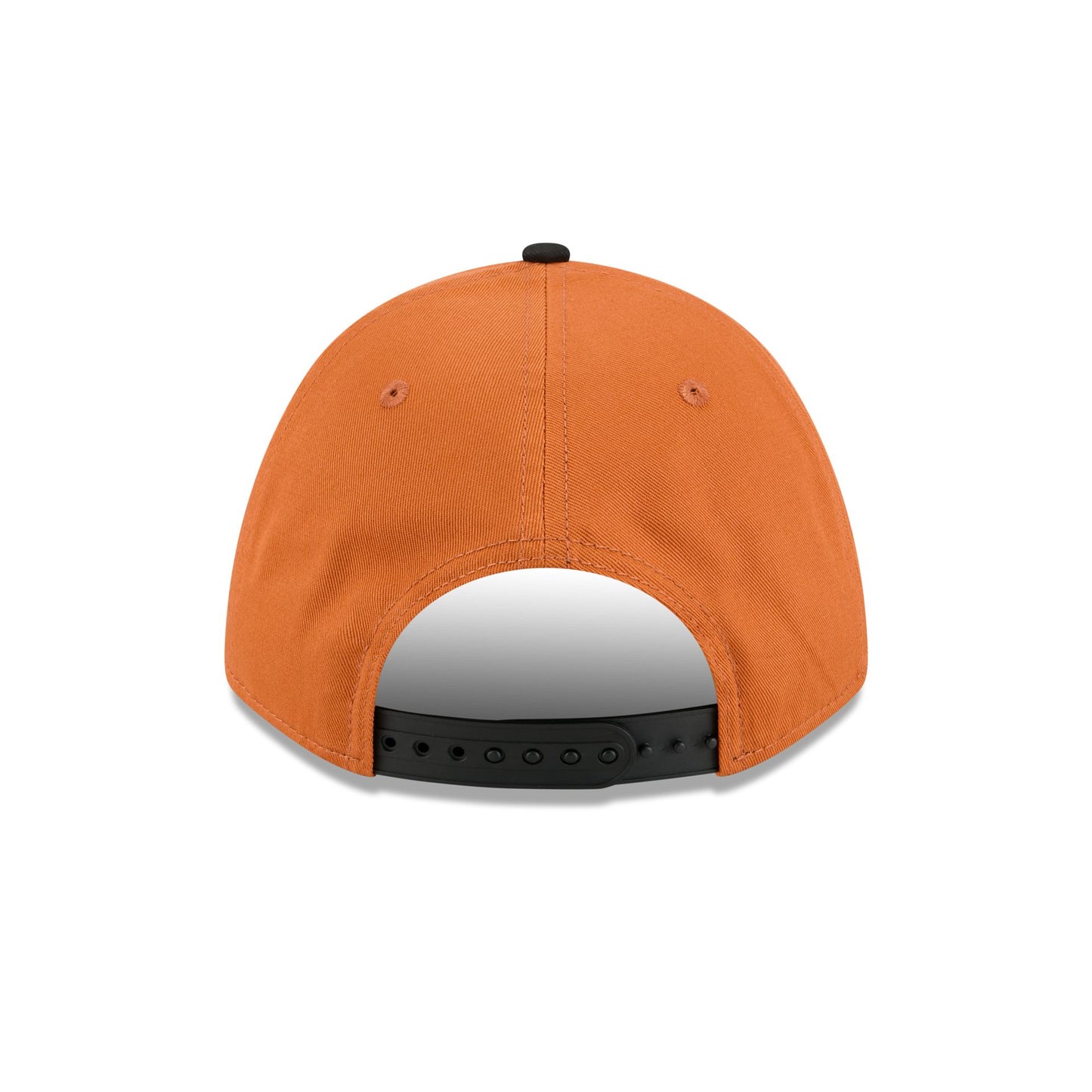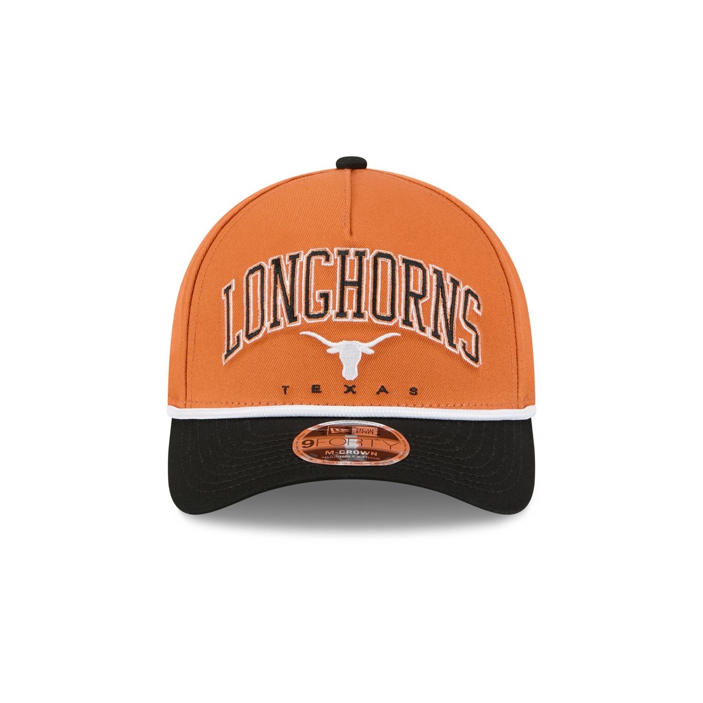 The Texas Longhorns Arch 9FORTY M-Crown A-Frame Snapback features an embroidered Longhorns Alternate graphic at the front panels with a rope at the visor. Additional details include an adjustable snapback closure at the rear with a gray undervisor.
