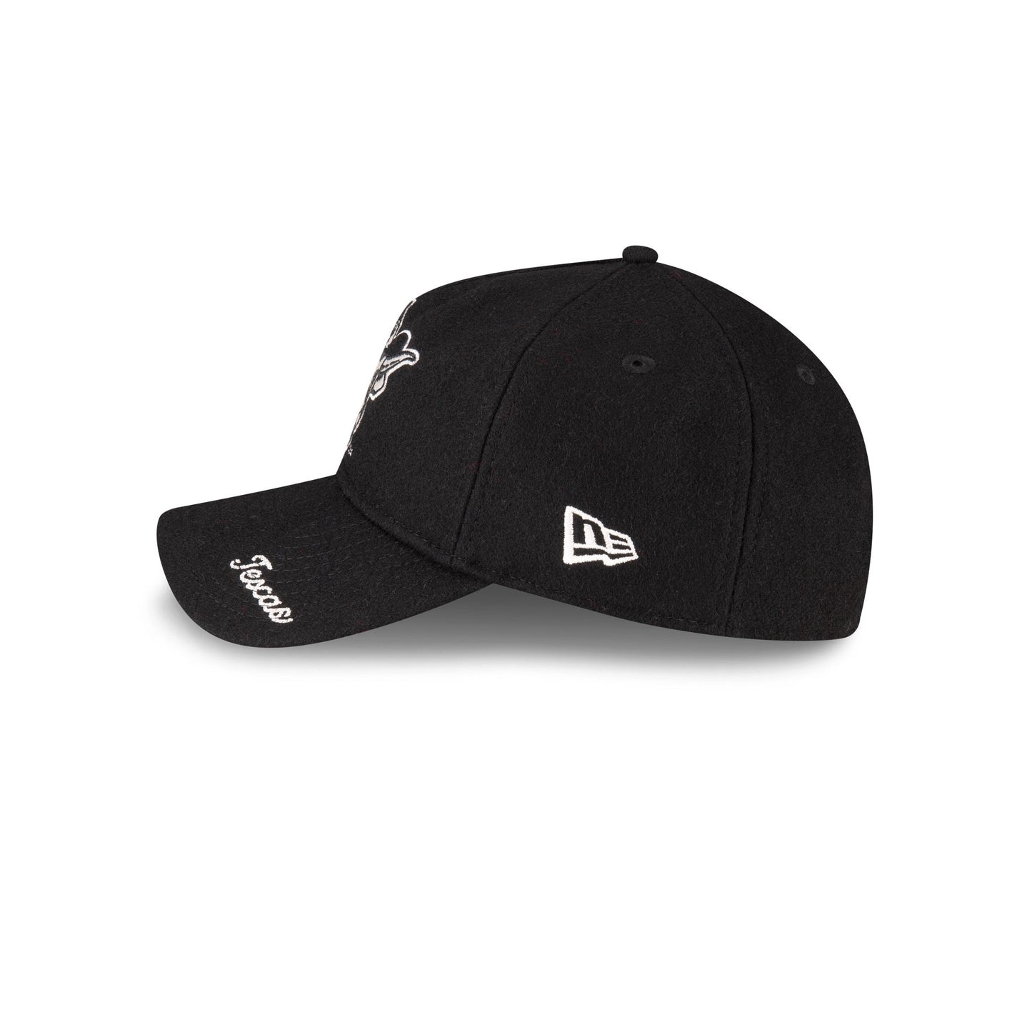 The Texas Longhorns College Vault Wool Letterman 9TWENTY A-Frame Adjustable Cap features an embroidered Longhorns College Vault logo at the front panels against a wool fabrication throughout the cap. Additional details include an embroidered team script at the visor with a striped adjustable D-Ring closure at the rear and a green undervisor.