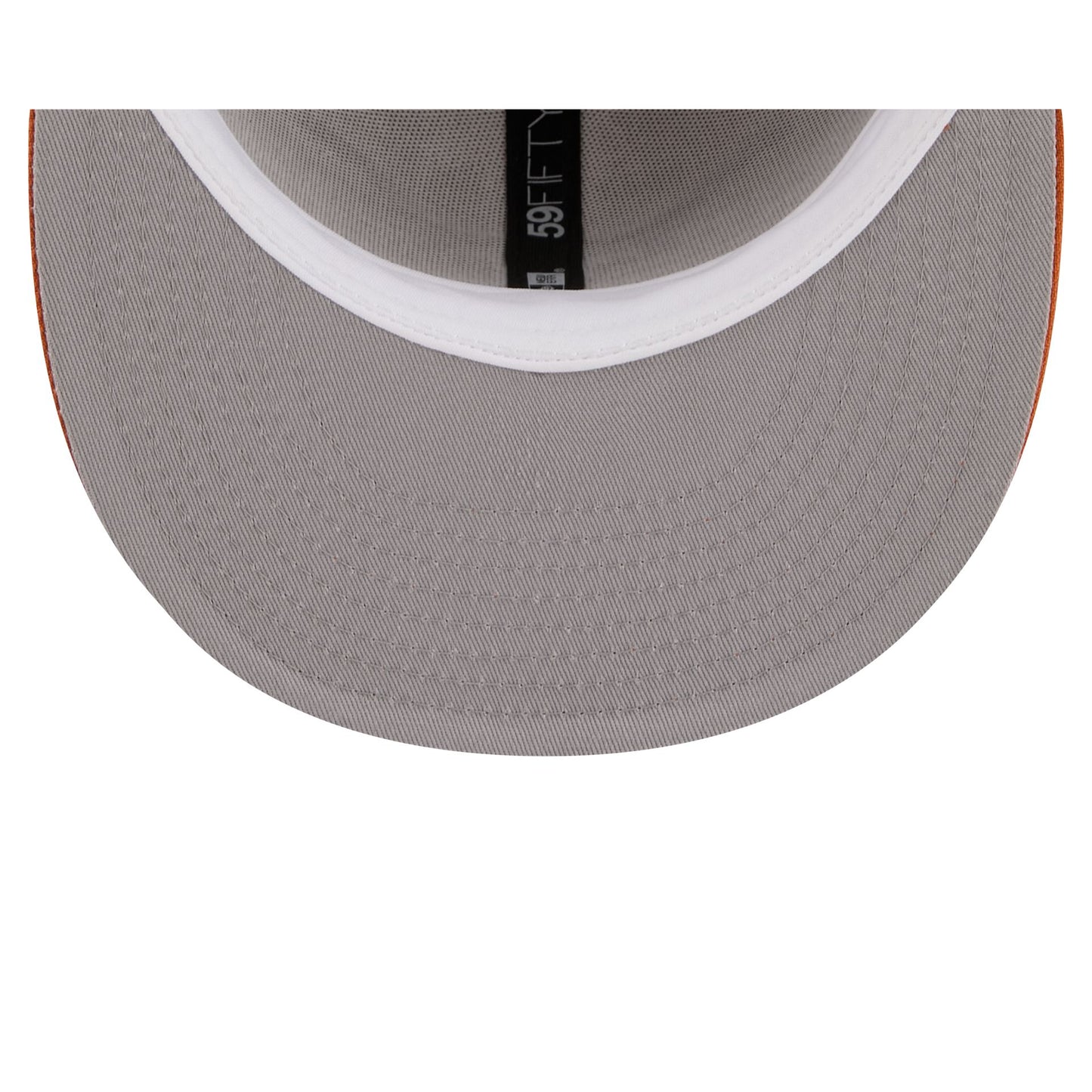 The Texas Longhorns Collegiate Two-Tone Chrome 59FIFTY Fitted Cap features an embroidered Longhorns logo at the front panels with an alternate team logo at the rear. Additional details include a 2003 NCAA Final Four patch at the right-wear side with an orange visor and a gray undervisor.