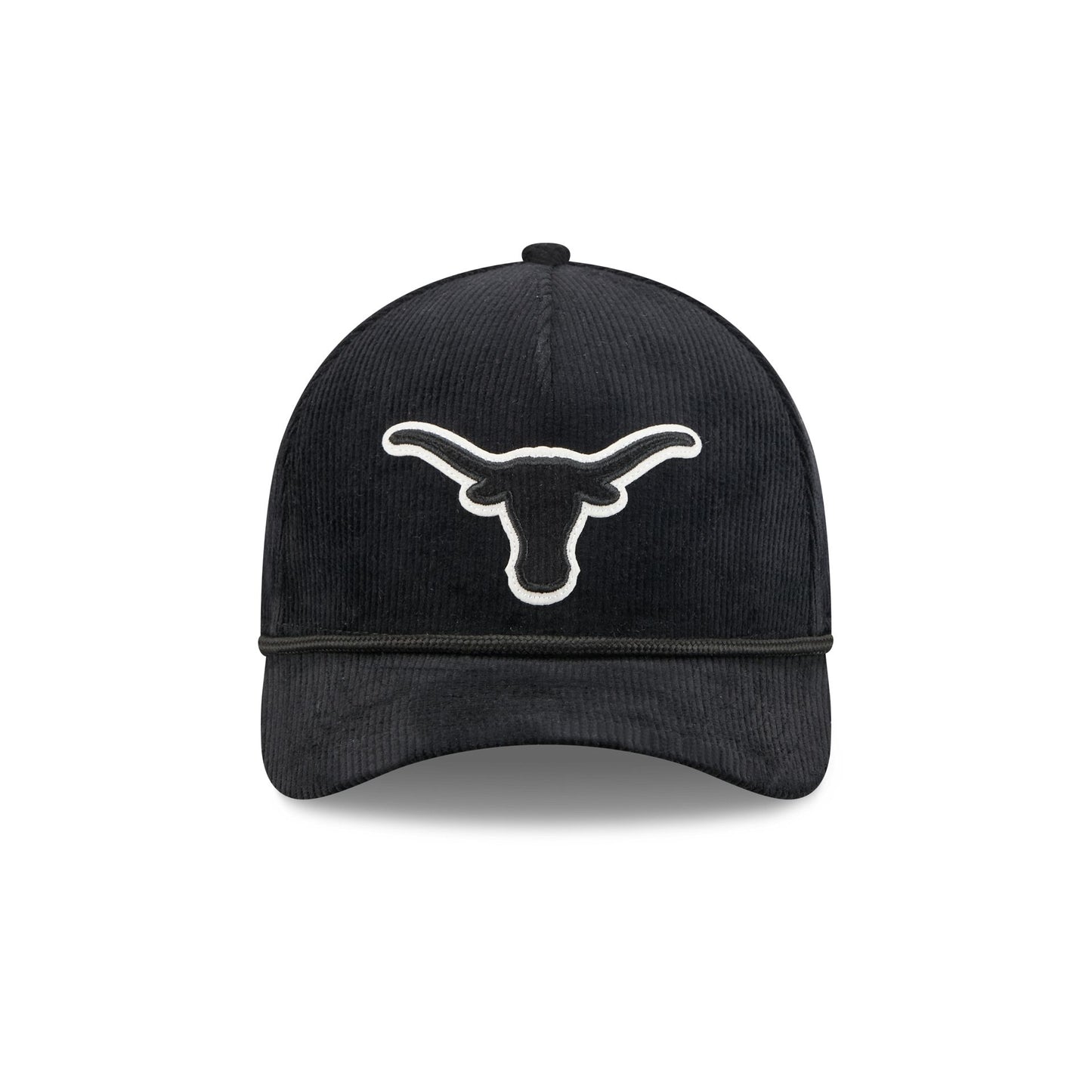 The Texas Longhorns Corduroy 9FORTY M-Crown A-Frame Snapback features an embroidered Longhorns logo at the front panels with a corduroy fabrication throughout and a rope at the visor. Additional details include a snapback closure at the rear and a gray undervisor.